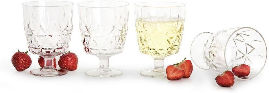 Akryl. Piknikowe kieliszki ze wzorem imitującym kryształ. Idealne do zimnych napojów. Art. nr: 5017851 Wymiary: 30 cl, H 110 mm Opakowanie: Giftbox