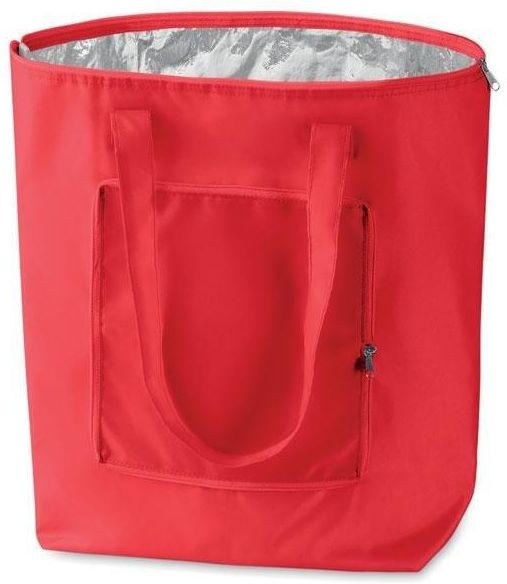 Wygodna składana torba chłodząca. Doskonała na produkty mleczne. 210T poliester z aluminiową folią wewnątrz. Materiał izolacyjny: Folia aluminiowa. Pojemność 13L. czerwona wymiary: 41 x 14 x 44 cm pojemność : ok 13 L waga torby: 0,100 gram