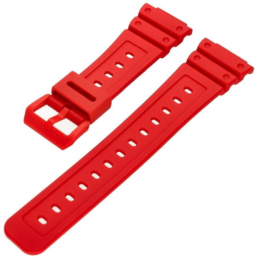 Pasek do zegarka Casio czerwony oryginalny CASIO GA-2100, GA-2100-4A (10597559). Pasek do zegarka został wykonany z wysokiej jakości tworzywa sztucznego w kolorze czerwonym. Jeśli chcesz aby Twój zegarek zyskał nowy, świeży wygląd to nowy pasek będzie idealnym rozwiązaniem. Szerokość paska jest idealnie dopasowana do dedykowanego modelu GA-2100. Zapoznaj się z ofertą modeli Casio G-Shock GA-2100 Oryginalny pasek Casio 10597559 do zegarka Casio G-SHOCK Kraj Producenta: Japonia Pasek / Bransoleta - Rodzaj: Pasek Pasek / Bransoleta - Materiał: Tworzywo Sztuczne Pasek / Bransoleta - Kolor: Czerwony Pasek / Bransoleta - Mocowanie: Profilowany Klamerka - Kolor: Czerwony Oryginalny pasek CASIO 10597559 do zegarka GA-2100-4A Pasek z tworzywa sztucznego z klamerką Kolor paska: Czerwony Kolor klamerki: Czerwony Długość paska część krótsza - 85 mm część dłuższa - 125 mm Przy zakupie w naszym sklepie otrzymujesz - oryginalne akcesoria CASIO, - dowód zakupu - paragon lub fakturę.