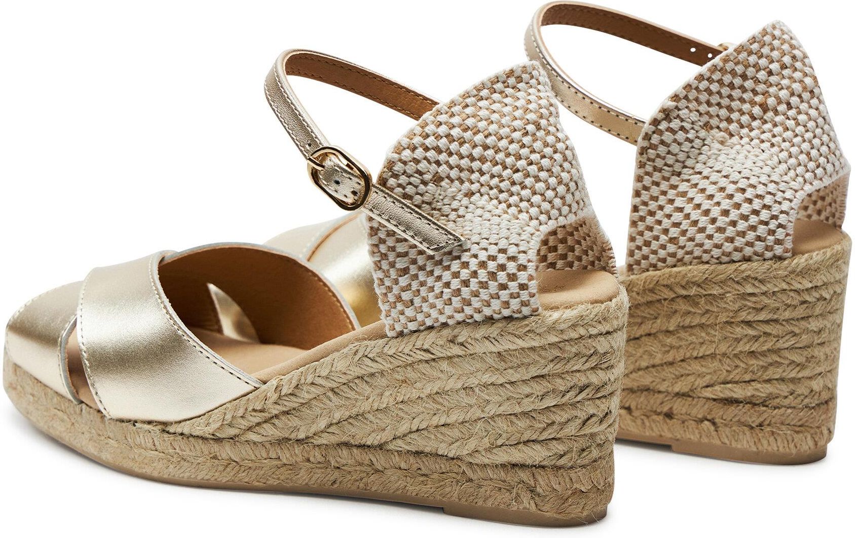 Eleganckie sandały damskie Geox Gelsa Low w efektownym złotym, metalicznym designie stanowią idealne połączenie stylu i wygody. Wyróżniającym elementem jest klasyczny espadryl na koturnie ozdobiony tkanym materiałem jutowym, który stanowi uzupełnienie gładkiego paska na palcach i wzorzystej części pięty. W sandałach zastosowano technologię: Respira™ zapewnia optymalną oddychalność dzięki specjalnej membranie w podeszwie, która odprowadza wilgoć i zapobiega przedostawaniu się wody do środka Lekka i oddychająca konstrukcja sprawia, że te sandały idealny wybór na ciepłe, letnie dni w mieście. Metaliczny złoty odcień nadaje butom delikatnego blasku i kobiecości, dzięki czemu doskonale uzupełnią każdą letnią stylizację. Połączenie wygodnego obcasa na koturnie i oddychającej konstrukcji zapewnia maksymalny komfort podczas całodziennego noszenia. Wybierz te stylowe sandały na wszystkie letnie okazje.