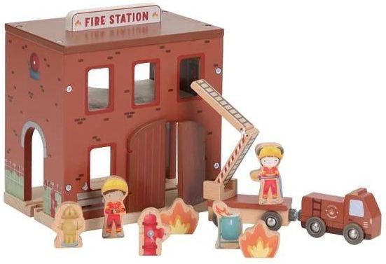 Drewniana remiza strażacka Little Dutch z autkiem, wysuwaną drabiną, strażakami i psem pomocnikiem. Idealna do zabawy w akcje ratunkowe i naukę współpracy.