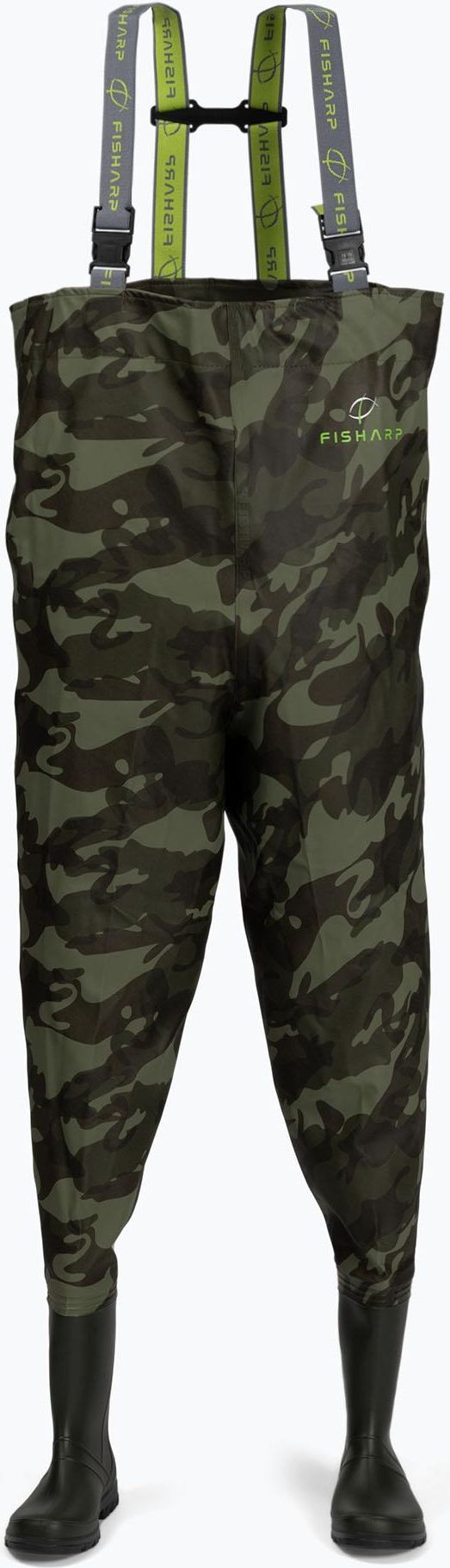 Wodery Spodniobuty Wędkarskie Wodoodporne Pros Fisharp Camo r. 47 Producent: PROS, Symbol: SBF01/CAM-00009-47 Spodniobuty/Wodery Pros Fisharp Camo - 47 Wodery SHARP MORO, model produkowany z lekkiej wodoochronnej tkaniny Flyer Tex, dającej podwyższony komfort użytkownika dzięki zoptymalizowanej wadze produktu. Technika obustronnego zgrzewania prądem wysokiej częstotliwości zapewnia 100% szczelność szwów. Wyposażony w kieszeń wewnętrzną i regulowane szelki. Przeznaczone dla użytkowników potrzebujących ochrony nóg przed wodą, głównie podczas aktywności hobbystycznych takich jak wędkarstwo, łowiectwo. Obustronne zgrzewanie Kalosz standard Elastyczne szelki wymienne Gramatura materiału: 290 gram/m² Kolor: moro Kod produktu: SBF01/CAM-00009-47