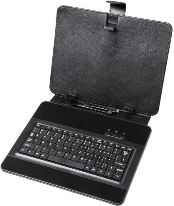 Pokrowiec uniwersalny do tabletów 9.7 cala z klawiatura micro USB - Uniwersalny pokrowiec do tabletów z klawiaturą marki Quer. - Pokrowiec sztywny, skutecznie chroni Tablet przed uszkodzeniami. - Pokrowiec posiada podstawkę, która umożliwia ustawienie urządzenia w pozycji ułatwiającej pisani, przeglądanie internetu itp. - Klawiatura podłączana jest za pomocą kabla micro USB. - Sygnalizacja pracy diodami. Klawiatura działa tabletami wyposażonymi gniazdo USB HOST Kolor (wyliczeniowy): Czarny Pozostałe parametry: Mocowania umieszczone w górnej i dolnej części pokrowca. Zakres mocowania 16cm - 18,5cm wysokości. Pokrowiec bez ograniczeń po bokach. Przekątna ekranu (urz.mobilne): 9,7" (iPad) Typ (etui): etui - klawiatura Wykonanie ze skóry: Nie Wymiary: 25cm x 19cm