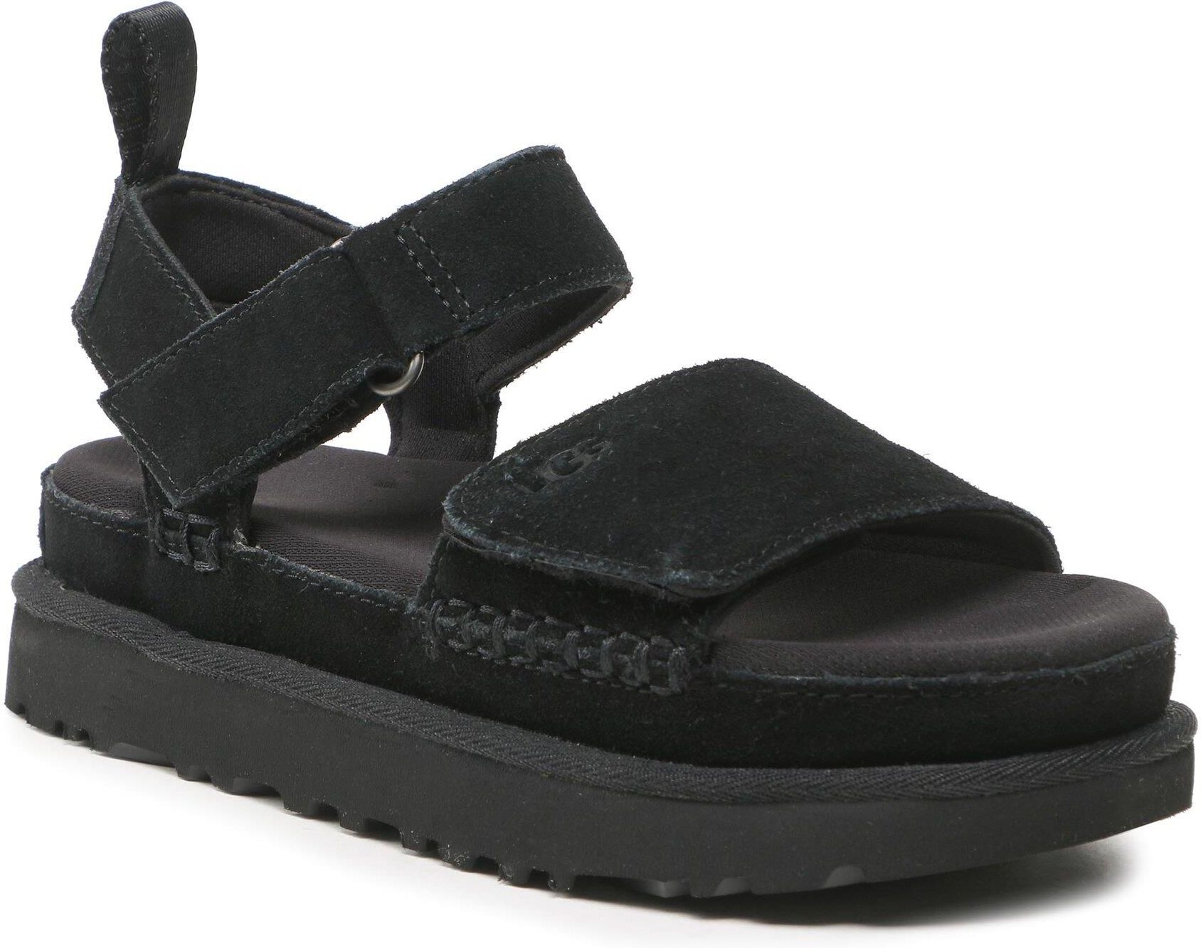 Sandały UGG to połączenie elegancji i wygody, które z pewnością zachwycą każdą kobietę. Wykonane z najwyższej jakości skóry naturalnej zamszowej w klasycznym czarnym kolorze, prezentują się niezwykle stylowo i uniwersalnie. Zapięcie na rzep zapewnia łatwość zakładania oraz idealne dopasowanie do stopy, co gwarantuje komfort noszenia przez cały dzień. Idealne do eleganckich i casualowych stylizacji, te sandały będą niezastąpionym elementem każdej garderoby. Wybierz jakość i styl z marką UGG!
