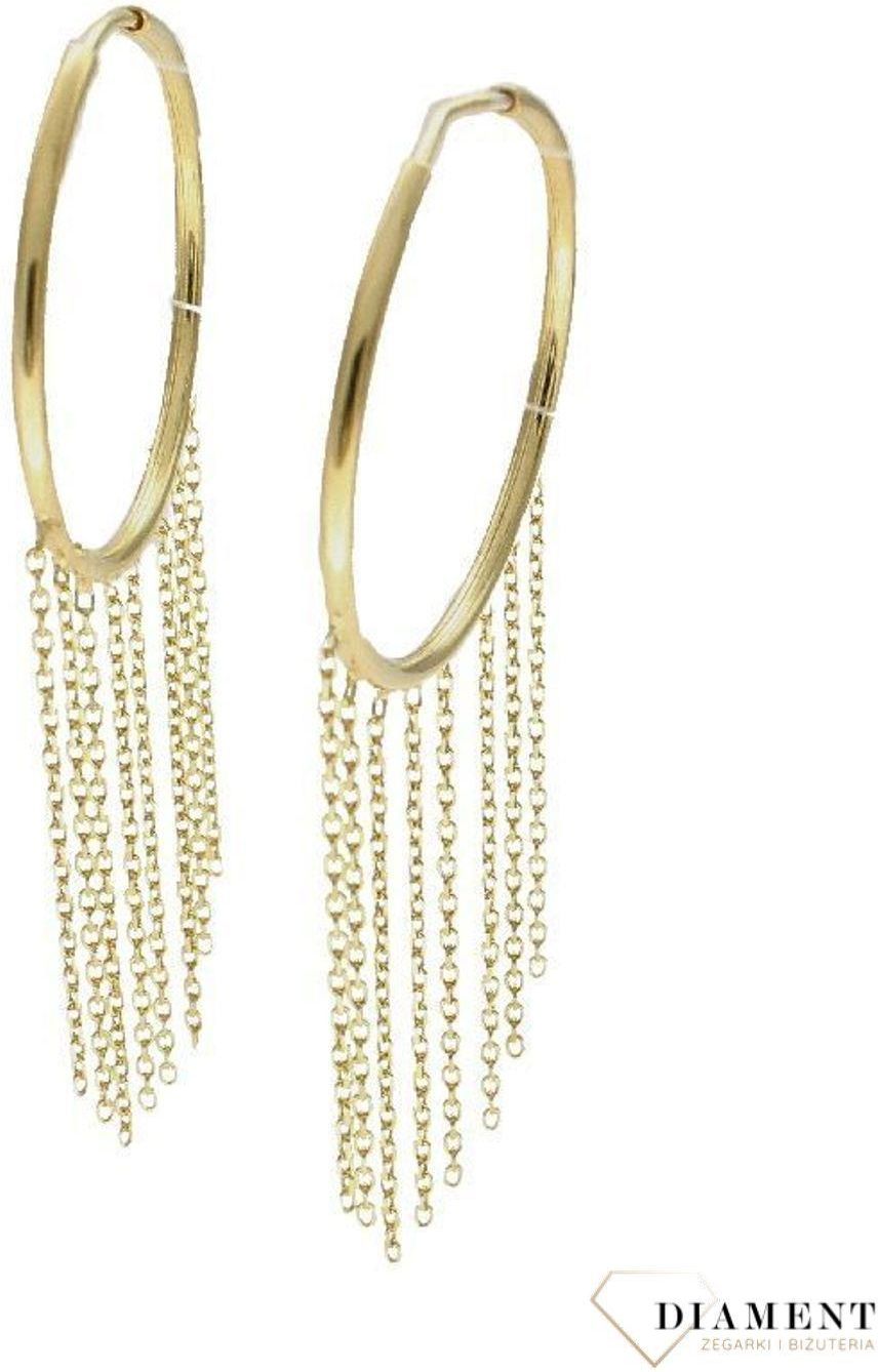 Srebrne pozłacane kolczyki koła z wiszącymi łańcuszkami Szubin