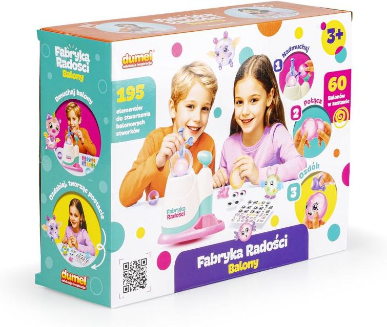 Aktywuj balonową frajdę! Ta odlotowa maszyna zapewni moc kreatywnej zabawy, i to bez baterii, kleju oraz podgrzewania. W zestawie znajdziesz wszystko, czego potrzeba, aby stworzyć kolorowe, balonowe stworki. Przy pomocy specjalnej maszynki nadmuchaj baloniki do zaznaczonego na podziałce poziomu, wyjmij je i połącz ze sobą w zabawne stworki-potworki. Dołączone do zestawu akcesoria, takie jak uszka, oczka czy skrzydełka, pozwolą ci ozdobić stworzone postacie, aby nadać im niepowtarzalnego wyglądu. Produkt przeznaczony jest dla dzieci od 3 roku życia. Cechy produktu zabawa polega na nadmuchaniu za pomocą maszynki kolorowych baloników, łączeniu ich w balonowe stworki oraz ozdabianiu ich, zgodnie z własnym pomysłem w zestawie 195 elementów do stworzenia balonowych stworków (w tym: 60 balonów, 90 naklejek, 44 akcesoria oraz maszynka do balonów) wiek: 3+.