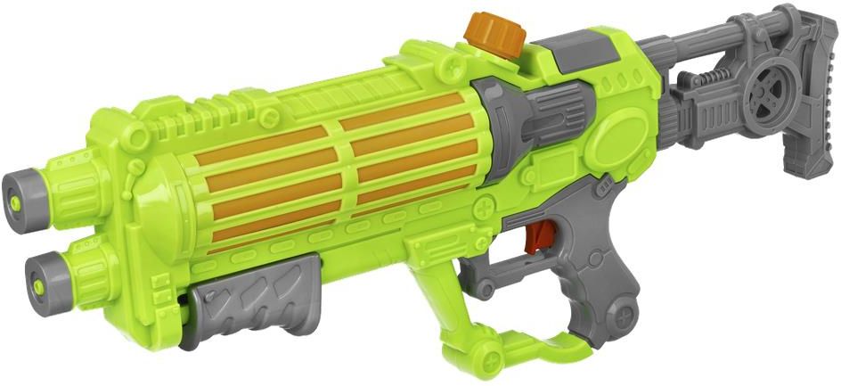 Pistolet wodny ma dwie lufy i zbiornik wody 600 ml. Wystrzelany strumień dociera na odległość nawet trzech metrów.