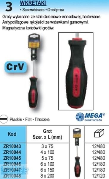 ZR10044 Wkrtak paski 4x100mm, jeyk CV [Z], MegaWkrtak paski typu "" Jeyk"" Groty wykonane ze stali chromowo-wanadowej, hartowane Antypolizgowe rkojeci ze wstawkami gumowymi Magnetyczne kocówki grotów
