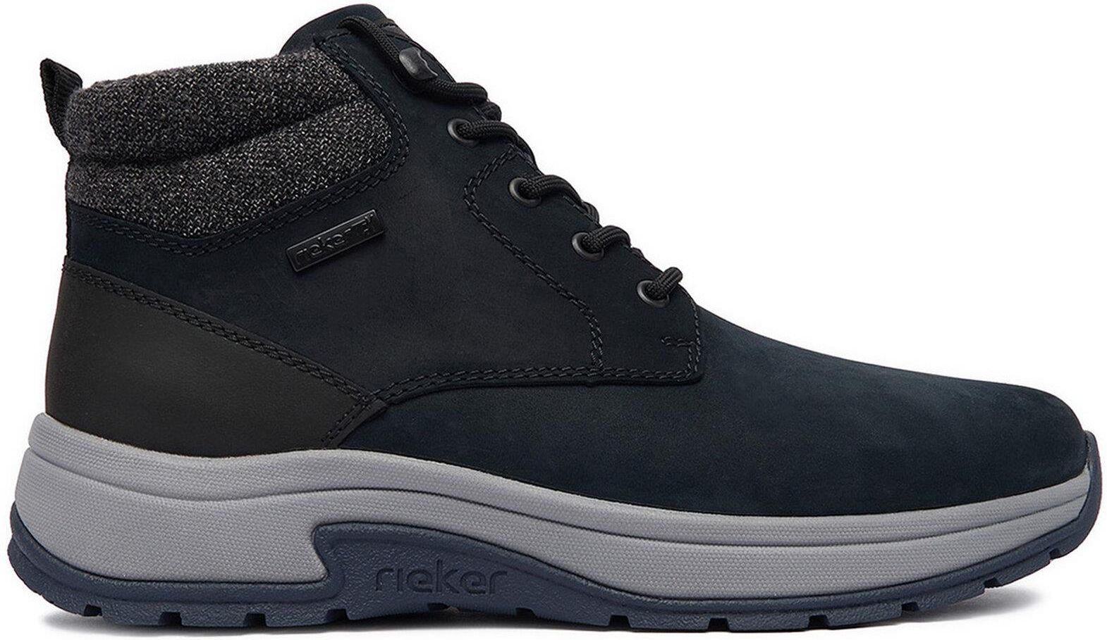 Rieker CEO 11004 14 Granatowy Sztyblety męskie Rieker CEO 11004 14 Granatowy to niezwykle wszechstronny element garderoby, który zyskuje coraz większe uznanie w świecie mody. Łącząc w sobie elegancję i komfort, te buty stanowią doskonały wybór zarówno na co dzień, jak i na specjalne okazje. Model ten przyciąga uwagę swoją klasą i funkcjonalnością, co czyni go idealnym rozwiązaniem na chłodniejsze dni. Przeznaczone na sezon jesień/zima, te sztyblety to połączenie stylu casualowego z praktycznymi rozwiązaniami. Typ i materiał wykonania Obuwie to wykonane jest z wysokiej jakości nubuku oraz skóry naturalnej, co gwarantuje nie tylko estetyczny wygląd, ale również trwałość. Nubuk charakteryzuje się delikatnym, miękkim wykończeniem, nadającym butom elegancki wygląd. Skóra naturalna z kolei zapewnia doskonałą wentylację i dopasowanie do stopy. Sztyblety te występują w rozmiarach od 40 do 46, co umożliwia łatwe dopasowanie do różnych potrzeb i preferencji użytkowników. Dzięki gładkiemu wzorowi, obuwie z łatwością można zestawić z różnymi stylizacjami, od casualowych po bardziej eleganckie. Kluczowe cechy produktu Model Rieker CEO 11004 14 Granatowy wyróżnia się wieloma istotnymi elementami, które wpływają na jego atrakcyjność i funkcjonalność: materiał wykonania: wysokiej jakości nubuk i skóra naturalna, rozmiary: szeroki wybór od 40 do 46, technologia Rieker Antistress: doskonała amortyzacja i elastyczność, ocieplenie wnętrza: zapewnia komfort w chłodniejsze dni, gumowe wstawki: ułatwiają zakładanie i zwiększają dopasowanie, antypоślizgowa podeszwa: bezpieczeństwo w trudnych warunkach atmosferycznych, wzmocnione noski: zwiększają trwałość obuwia. Konstrukcja i podeszwa Konstrukcja tych sztybletów została zaprojektowana z myślą o maksymalnym komforcie. Posiadają one płaską, a jednocześnie stabilną podeszwę, która zapewnia odpowiednie wsparcie dla stóp. Dzięki innowacyjnej technologii Rieker Antistress, obuwie to oferuje doskonałą amortyzację, co pozwala na długotrwałe użytkowanie bez uczucia zmęczenia. Podeszwa zaprojektowana jest również w taki sposób, aby zapewnić komfort w trudnych warunkach atmosferycznych, co zwiększa jej funkcjonalność. Rodzaj zapięcia Model ten wykorzystuje wygodne i praktyczne zapięcie typu wsuwane z gumowymi wstawkami po bokach. Takie rozwiązanie jest szczególnie cenione przez mężczyzn, którzy cenią sobie komfort i szybką obsługę. Gumowe wstawki nie tylko ułatwiają zakładanie, ale także zapewniają lepsze dopasowanie do stopy, co przekłada się na jeszcze większy komfort noszenia. Funkcje dodatkowe i wykończenia Te sztyblety oferują również dodatkowe funkcje, które zwiększają ich atrakcyjność. Ocieplenie wnętrza jest istotne dla komfortu w chłodniejsze dni, a wzmocnione noski zwiększają trwałość obuwia. Dodatkowo, estetyczne detale, takie jak ozdobne przeszycia czy subtelne logo na cholewce, nadają butom unikalny charakter.