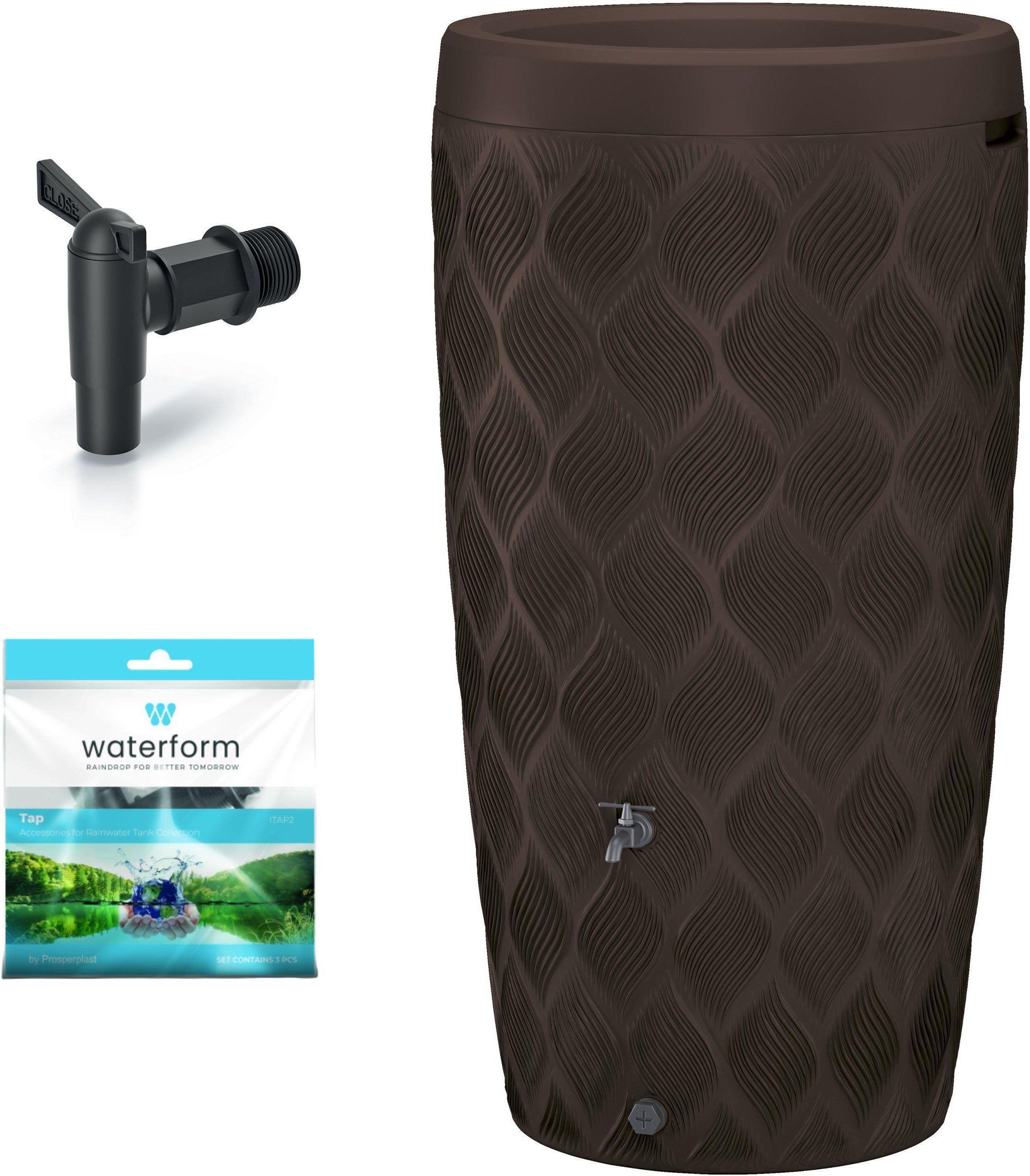 Zbiornik na deszczówkę Flow 240l - Brązowy + Kranik Specyfikacja beczki: średnica góry - 58 cm średnica podstawy - 44 cm średnica otworu góry - 56 cm wysokość - 113 cm pojemność - 240 l materiał - tworzywo sztuczne W skład zestawu wchodzi: Zbiornik na deszczówkę Flow 240l Pokrywa do beczki Kranik CANTAP Zbiornik wyposażony jest w: górny otwór z pokrywą, dwa otwory gwintowane na kran lub węża ogrodowego na szybkozłączkę. Kran do deszczownicy CANTAP ITAP2 Kranik CANTAP. Kranik ułatwiający dozowanie wody deszczowej. Kranik z gwintowanym otworem posiada: uszczelkę plastikową nakrętką. Uniwersalny plastikowy kran do zbiorników ozdobnych marki prosperplast. Zawór czerpalny ogrodowy z końcówką na węża. Gwint 3/4" Średnica końcówki na węża 26 mm Materiał - Tworzywo sztuczne