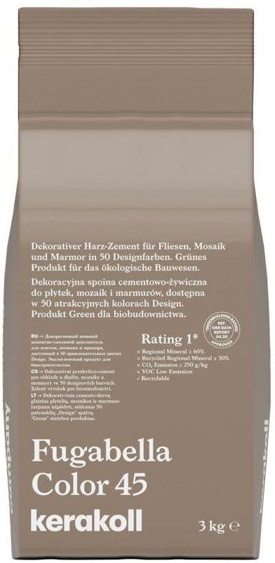 Fugabella® Color FUGA KREAKOLL Dekoracyjna spoina cementowo‑żywiczna do płytek, mozaik i marmurów. Produkt green dla biobudownictwa. Opakowanie: 3kg Kolor: 45 Fugabella® Color jest rewolucyjną, hybrydową spoiną dekoracyjną do wszelkich powierzchni z gresu, mozaik i kamieni naturalnych. Fugabella® …