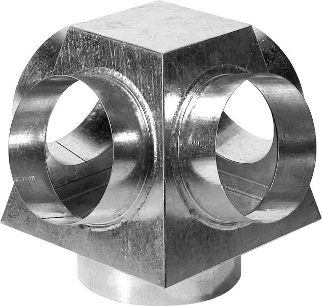 Rozdzielacz jest częścią systemu DGP lub systemu wentylacyjnego. Wykorzystywany jest, np. do rozdzielenia strumienia gorącego powietrza płynącego z kominka. CHARAKTERYSTYKA: - średnice króćców: 4x fi 150 - średnica wejścia: fi 150 - element zgrzewany punktowo - materiał: blacha ocynkowana galwanizowana - grubość blachy: 0,5 mm. Wykonujemy również inne elementy z blachy ocynkowanej na zamówienie. Wszelkie zapytania prosimy kierować na adres: a.wosztyl@kratki.com. Termin oczekiwania na realizacje zamówienia do 7 dni roboczych.