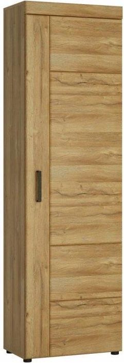 Szafa z kolekcji Cortina, producenta Meble Wójcik, sprawdzi się w każdym pomieszczeniu, w którym wolne miejsce podłogowe jest na wagę złota. Mebel pomoże utrzymać porządek wśród przechowywanej garderoby, jednocześnie nie przytłaczając swoją bryłą żadnej aranżacji. Będzie też eleganckim dodatkiem do wystroju wnętrza, wnoszącym do niego ciepły i elegancki motyw natury. Co wyróżnia szafę ubraniową Cortina? Szafa jednodrzwiowa z drążkiem Cortina została wykonana z wysokiej jakości płyty laminowanej, odpornej na uszkodzenia mechaniczne i łatwej w czyszczeniu. Jej wnętrze zagospodarowano za pomocą dwóch półek oraz jednej obszernej wnęki z drążkiem na wieszaki. Dzięki temu mebel pomieści zarówno obuwie czy poukładaną odzież, jak i okrycia wierzchnie lub stylizacje wieczorowe. Szafa korzysta z systemu cichego domyku, dla pełnego komfortu użytkowania. Posiada też praktyczny uchwyt metalowy na froncie, ułatwiający uchylanie jej drzwiczek. Czarny kolor tego elementu dodaje jej nieco surowości, charakterystycznej dla aranżacji loftowych. Jak wygląda mała szafa Cortina? Prezentowana szafa do przedpokoju lub małej sypialni ma prosty design, nawiązujący do stylu minimalistycznego. Sprawdzi się jednak również w bardziej klasycznym wnętrzu z uwagi na swoją masywną bryłę i nieskomplikowaną linię. Mebel został wybarwiony na dekor Dąb Grandson, który wprowadza do aranżacji modny i ponadczasowy rysunek drewna. Dzięki niemu szafa prezentuje się elegancko, ale dodaje wnętrzu również ciepła i przytulności. Jest też neutralnym tłem dla wyrazistych dodatków, które nadają mieszkaniu charakter. Wymiary szafy Szerokość: 58 cm Głębokość: 37,4 cm Wysokość: 195 cm