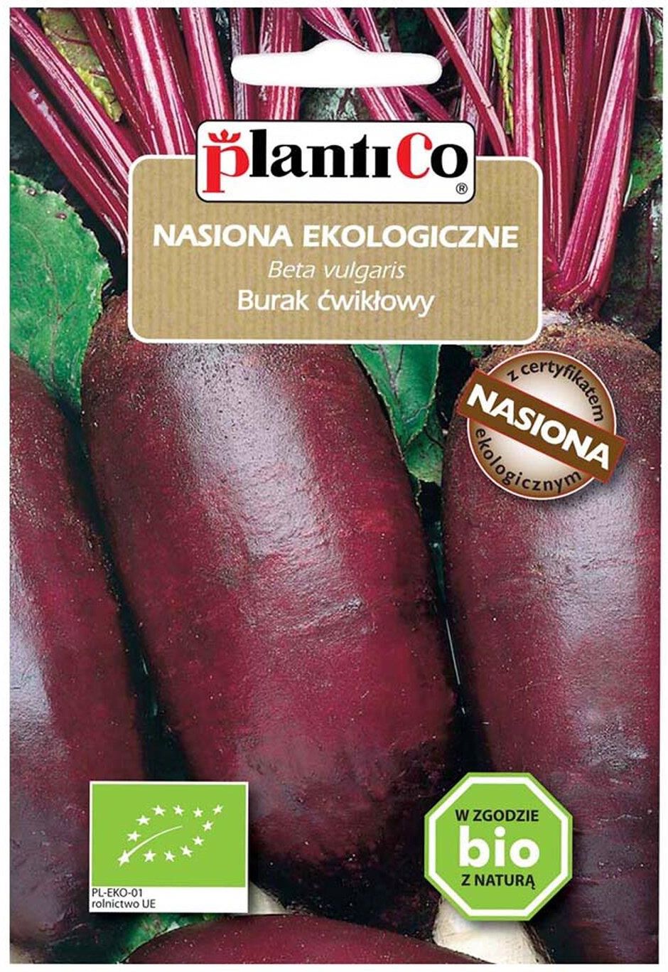 Nasiona buraka marki PlantiCo. Ekologiczne nasiona wyprodukowane w oparciu o naturalne metody uprawy bez użycia chemicznych środków ochrony roślin, nawozów sztucznych, produkcja nasienna potwierdzona certyfikatem. Burak ćwikłowy o podłużnym korzeniu średnicy 6-8 cm. Charakteryzuje się wysoką zawartością cukru, karminowo-czerwonym miąższem i niewidocznymi pierścieniami.