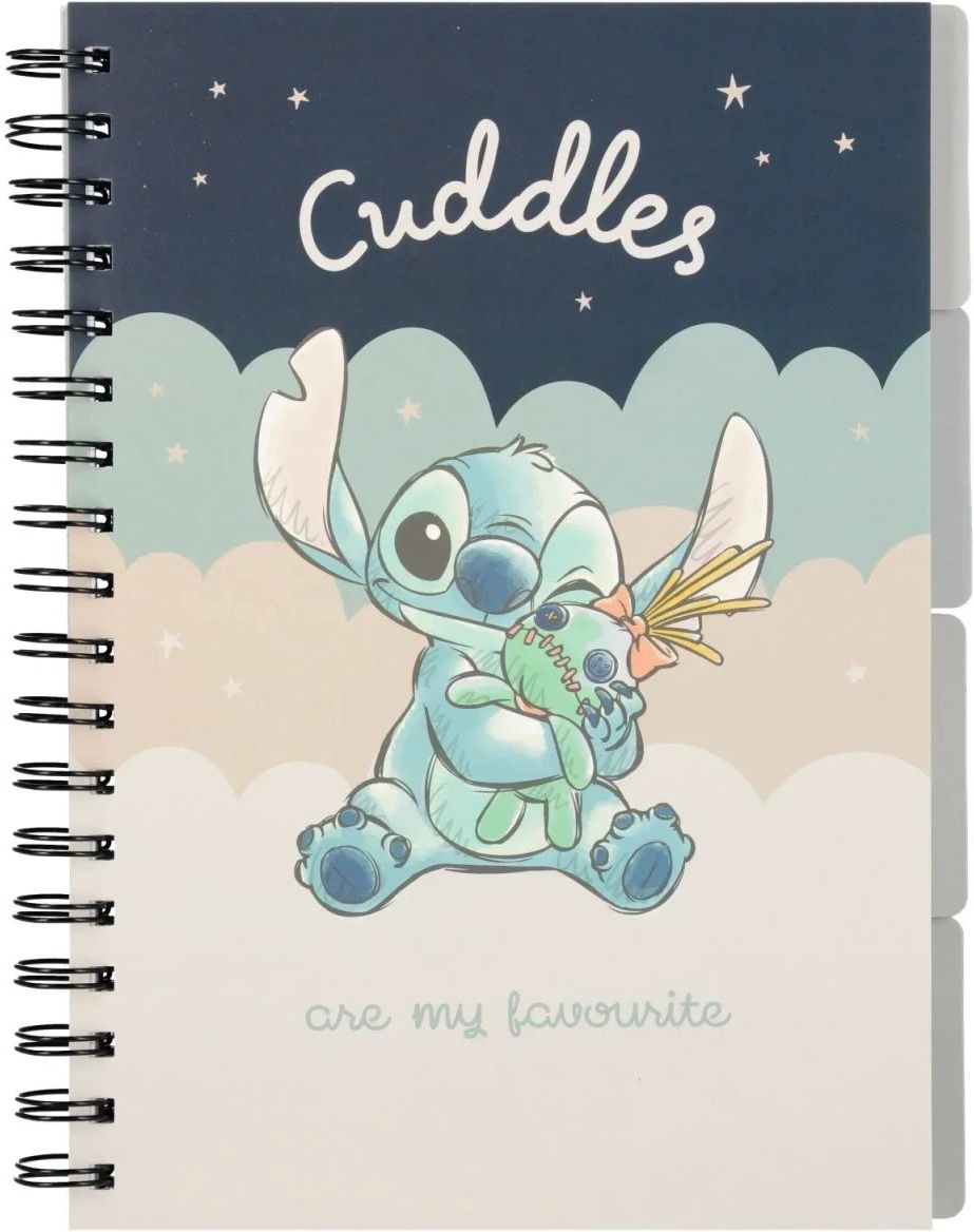 Kołozeszyty charakteryzuje wysoka jakość papieru, estetyczne wykończenia, modne kolory okładek. Miękkie, kartonowe okładki doskonale chronią zawartość kołozeszytów. Podwójna spirala umożliwia otwarcie na płasko i wygodne sporządzanie notatek. Niezbędne narzędzie w biurze, szkole czy domu. • Posiada 4 zakładki/registry • Okładka uv mat • Okładka z motywem z kolekcji Stitch • Ilość kartek 96 • Mikro perforacja ułatwia wyrywanie kartek • Biała koperta na wszystkie dodatkowe notatki (na końcu zeszytu). • Format B5 • Liniatura: kratka • Kolor kratki: niebieski • Margines: brak • Gramatura papieru: 70g Czarna podwójna spirala