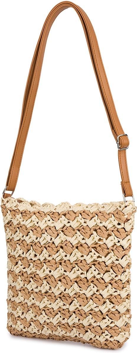 Beżowa Torebka damska na lato na ramię solidna plecionka listonoszka Tor-pa-35 Tarczyn