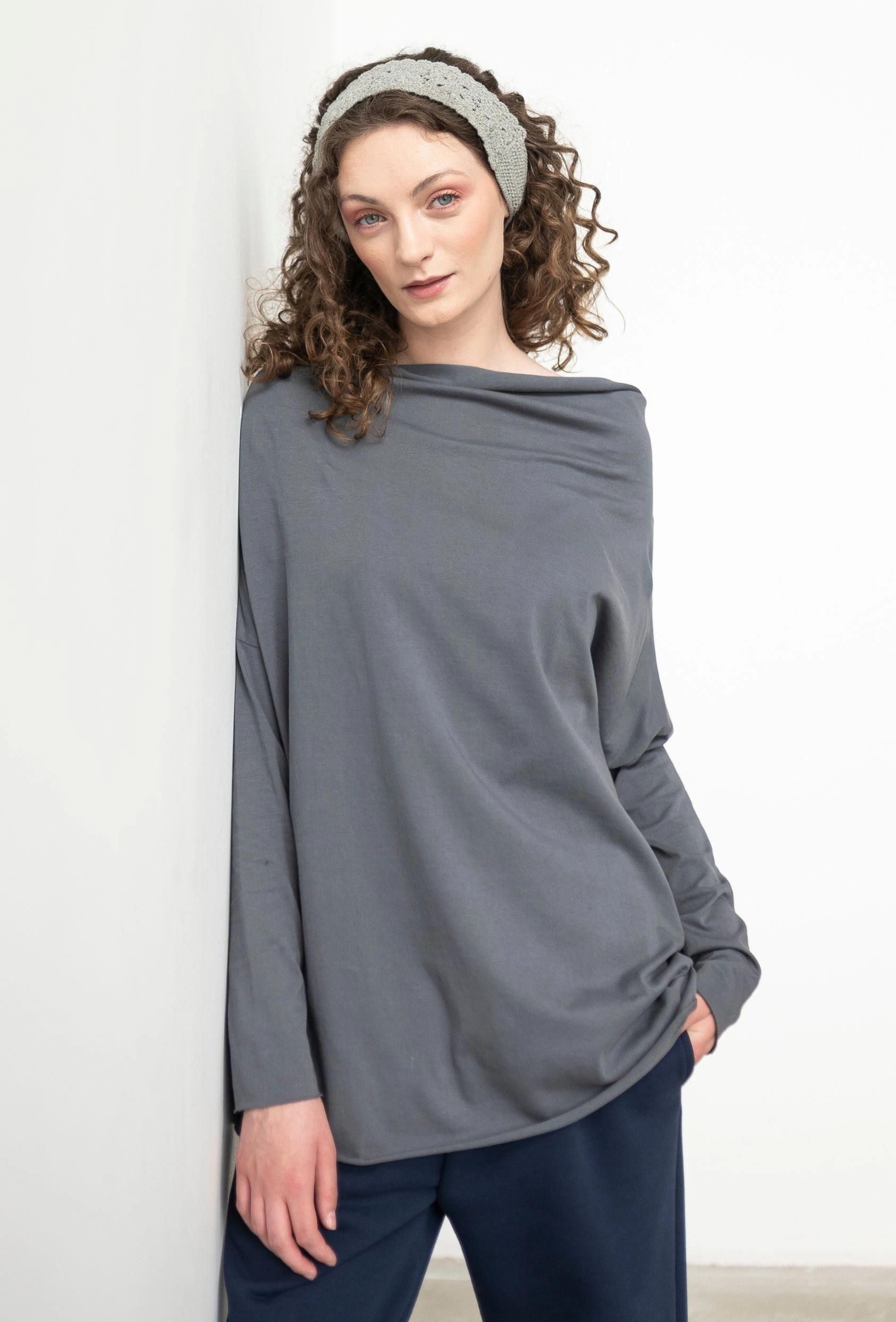 KOLOR: CIEMNY SZARY Bawełna 100% Elastyczna dzianina bawełniana. GRAMATURA: 150 G/M2 Kultowa oversizowa bluzka w wersji z długim rękawem z charakterystyczną luźno układającą się szeroką stójką. Foxy to nasz bestseller, który w każdym sezonie jesienno-zimowym pojawia się w nowej kolorystyce. …