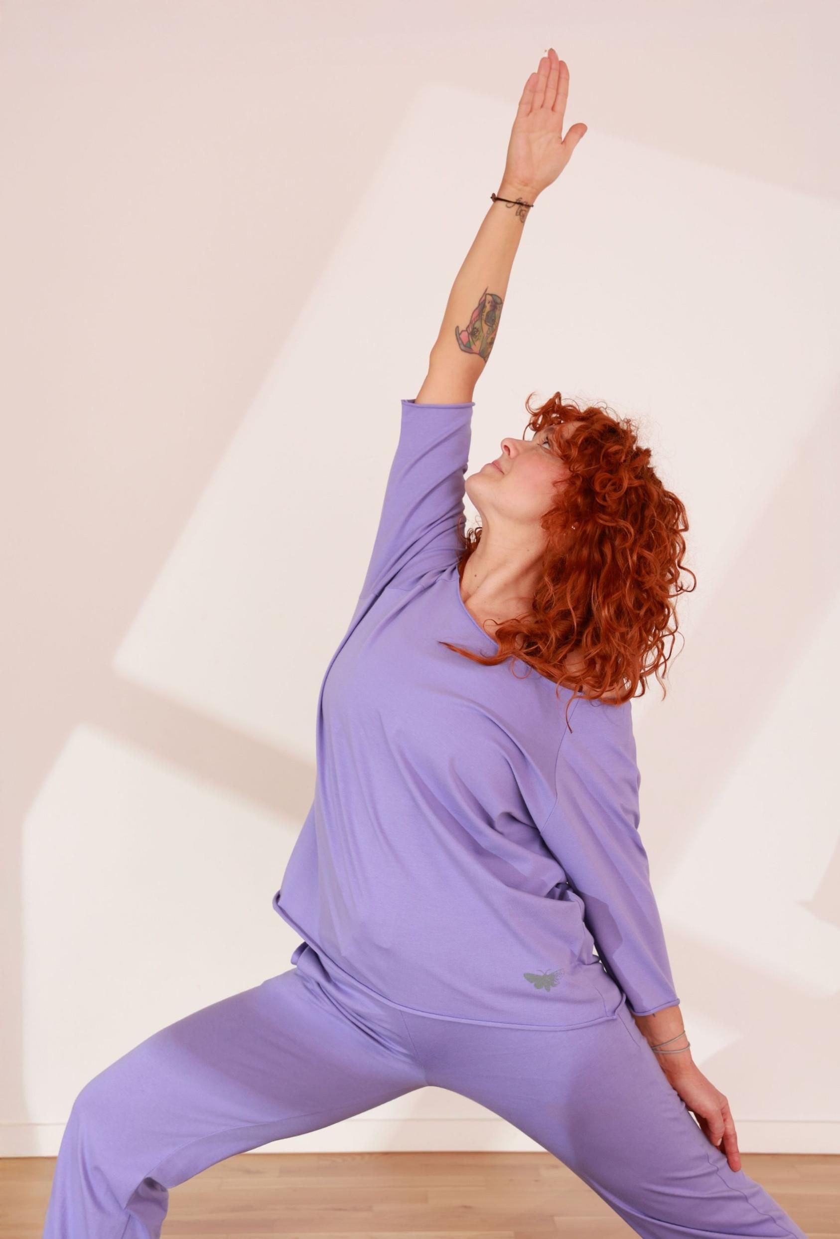 KOLOR: FIOLETOWY 25 Bawełna 94%, elastan 6% Elastyczna dzianina bawełniana. GRAMATURA: 170 G/M2 Model z linii ACTIVE WEAR. Prosta bluzka z reglanowym rękawem do łokcia. Dekolt w kształcie szerokiej łódki eksponujący linię ramion. Jej znak charakterystyczny to surowe wykończenie – brak obszyć przy rękawach, dekolcie i na dole. Minimalistyczna bluzka, która pasuje do każdej stylizacji. Zaprojektowana i uszyta w Polsce. • rękaw do łokcia, • dekolt w kształcie łódki, • rękawy, dekolt i dół bluzki wykończone na surowo, bez podwinięcia, • prosty krój, • modelka ma 176 cm wzrostu i nosi rozmiar M. Wymiary (w centymetrach, mierzone na płasko): XS: szerokość w biuście 46, szerokość dołu 50, długość rękawa 38, długość całkowita 60, S: szerokość w biuście 53, szerokość dołu 54, długość rękawa 40, długość całkowita 62, M: szerokość w biuście 58, szerokość dołu 58, długość rękawa 41, długość całkowita 64, L: szerokość w biuście 60, szerokość dołu 62, długość rękawa 43, długość całkowita 66.