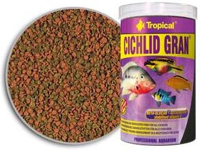 TROPICAL CICHLID GRAN 100ml pokarm dla pielęgnic wybarwiający pokarm w formie granulatu dla pielęgnic przeznaczony do codziennego karmienia pyszczaków gwarantuje doskonałą kondycję i zdrowie ryb zapewnia prawidłowy wzrost i rozwój ryb zapewnia rybom doskonałą kondycję, zdrowie i piękne kolory. …