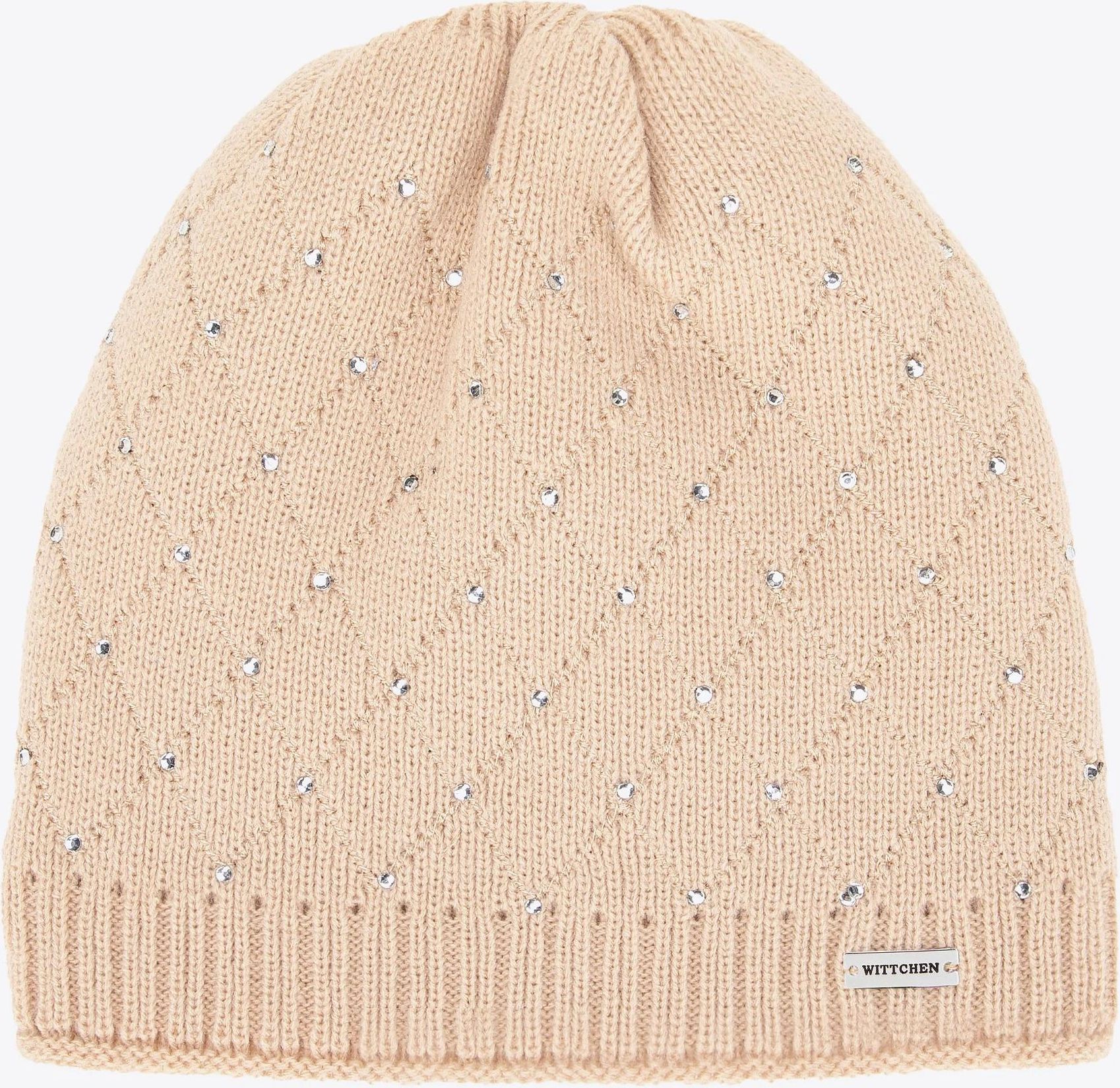 Czapka damska z ozdobnymi cyrkonami beżowa Tarczyn