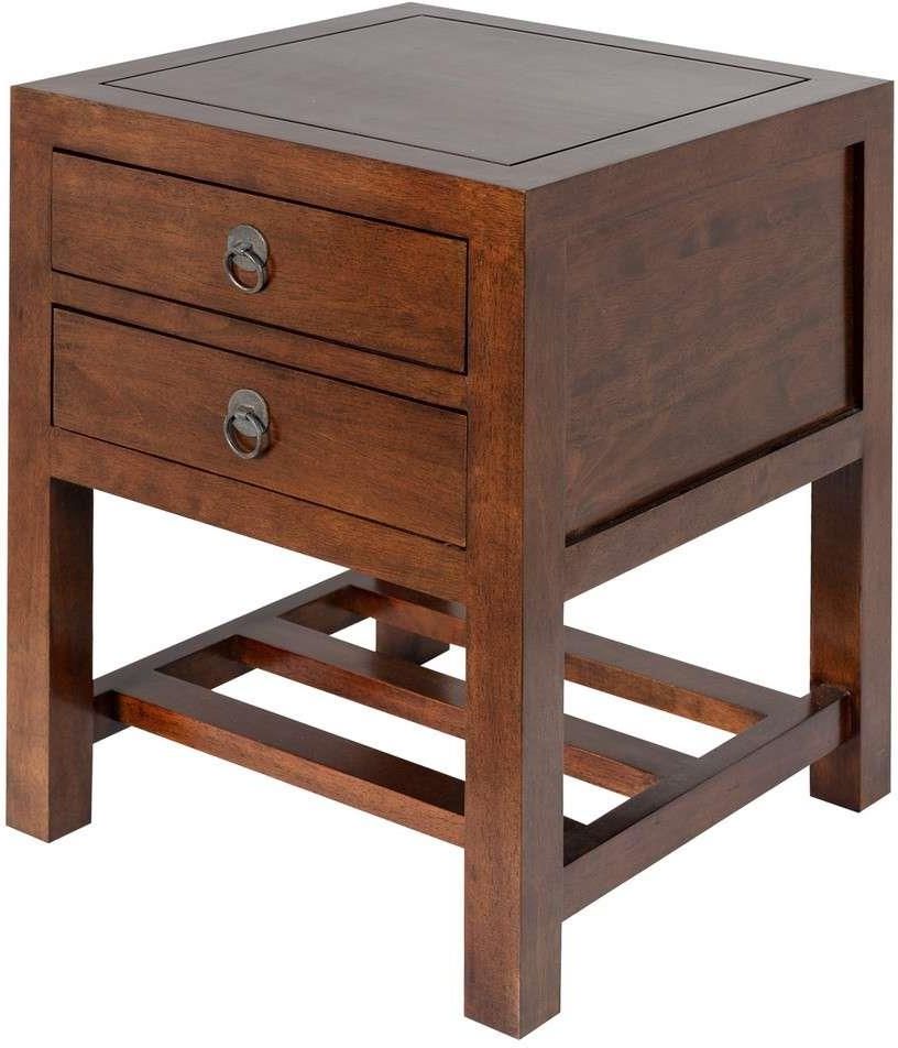Stolik nocny Nicodem, 46 x 46 x 61 cm Kod produktu: 005-689 Nocny stolik z drewna kauczukowego w brązowym kolorze. Drewniany stolik nocny to wspaniałe uzupełnienie aranżacji wnętrza w stylu klasycznym lub kolonialnym. Prosty design, naturalny kolor i charakterystyczne zdobienia w postaci metalowych, okrągłych okuć tworzą spójną całość. Dwie praktyczne, pojemne szuflady oraz dodatkowa dolna półka pozwoli na przechowywanie ulubionych czasopism czy książek. Szafka nocna nada sypialni przytulności i elegancji. Skompletuj ją z meblami o podobnej stylistyce. Wymiary: szer. 46 cm, 46 cm, wys. 61 cm. Materiał: drewno egzotyczne-kauczukowiec. Kolor: brązowy. Dane produktu Waga: 17.80kg Rozmiar: 46 x 46 x 61 cm Materiał: metal, drewno kauczukowe Rodzaj mebla: stolik Pomieszczenie: sypialnia