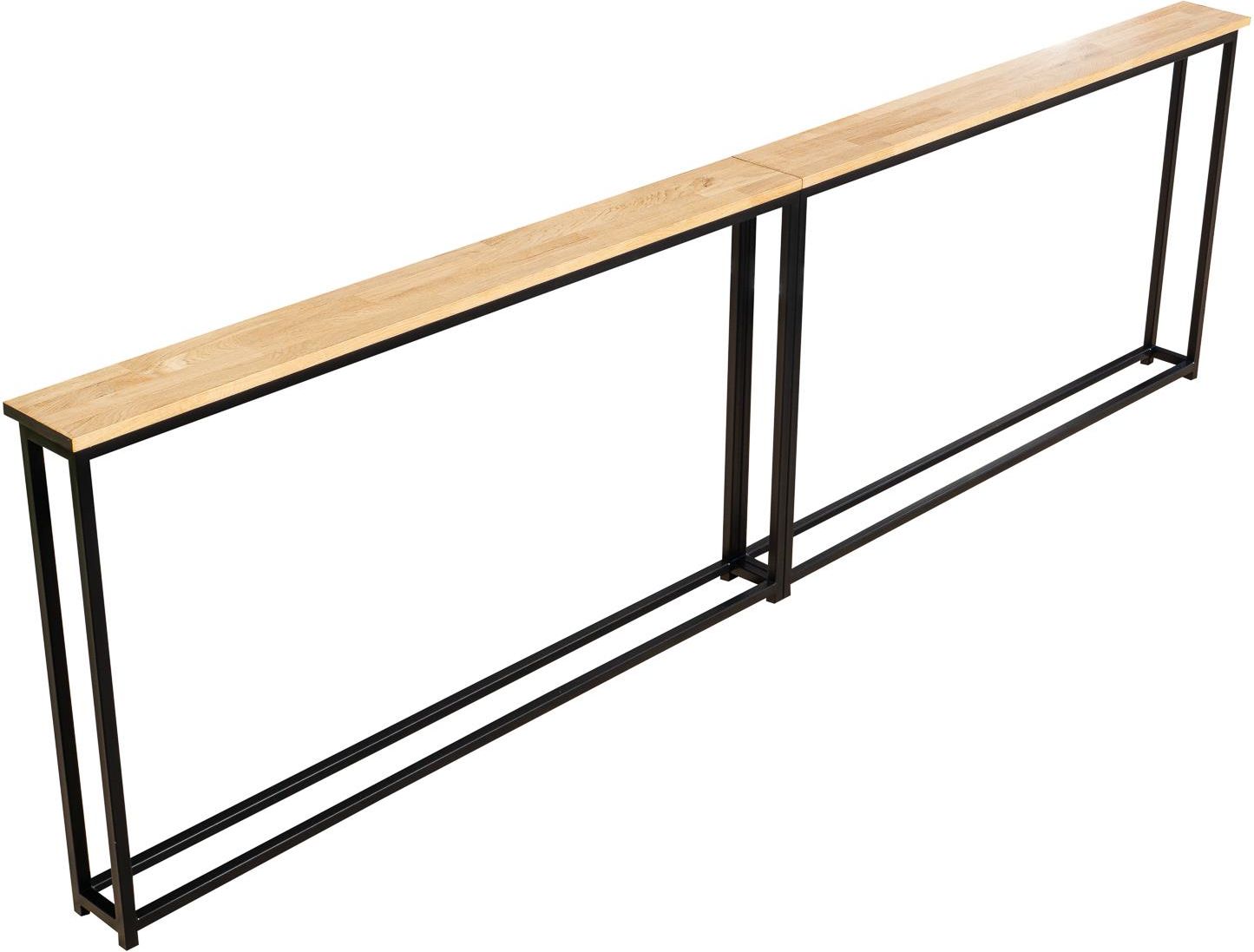 Długa konsola, stolik, drewniany blat SK-9 Długa konsola, toaletka dekoracyjna w stylu loftowym. Solidna stalowa konstrukcja z blatem z naturalnego drewna. Wąski rozmiar pozwala na umieszczenie jej w wąskich korytarzykach, przedpokojach lub za kanapą. Ten model wykonaliśmy jako dwie łączone ze sobą …