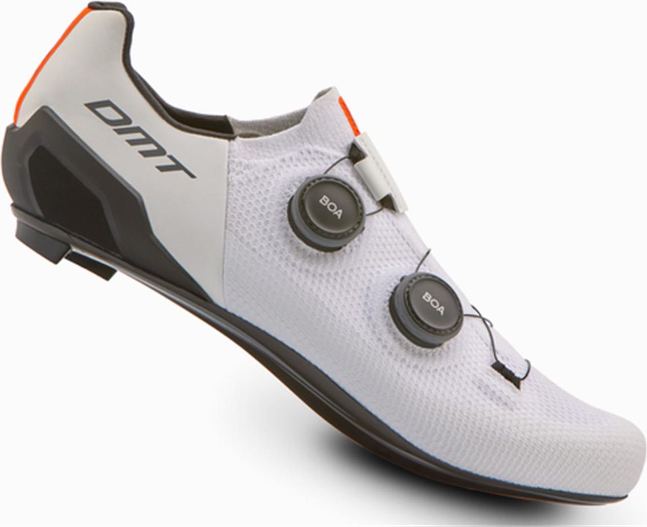 DMT SH10 to buty szosowe, które łączą wysoki komfort użytkowania ze sportowymi parametrami. Udało się to włoskiej firmie osiągnąć dzięki wykorzystaniu najwyższej klasy materiałów. Cholewka powstała charakterystycznego dla marki DMT materiału 3D Knit. Jest to lekka, elastyczna i doskonale oddychająca tkanina, która zapewnia podczas jazdy komfort nieosiągalny dla modeli z twardszych tworzyw sztucznych. Natomiast anatomiczne wyprofilowaną podeszwę wykonano z włókna węglowego, czyli tworzywa nie tylko lekkiego, ale także bardzo sztywnego, co zapewnia lepsze osiągi. W świetnie wyposażonej wersji SH10 zastosowano wiele rozwiązań dbających o wygodę kolarza podczas intensywnych lub długo trwających treningów. Najważniejsze z nich to zmniejszająca nacisk wkładka z mikrofibry, która ogranicza drętwienie stóp, a także profil zapobiegający otarciom w okolicach pięty. Sprawdzoną w kolarstwie szosowym technologia jest również BOA Fit, czyli system zapięcia na żyłki. Zastosowana w tym modelu wersja jest regulowana na dwa pokrętła, co jest optymalnym wyborem dla większości użytkowników. Najważniejsze informacje: Model szosowy – wyposażony w bardzo sztywną podeszwę dla lepszego transferowania mocy. Zróżnicowana grubość materiału w różnych strefach buta. Możliwość regulacji ustawienia bloków o 8 milimetrów (przód/tył). Cholewka z miękkiej i świetnie wentylowanej dzianiny 3D Knit. System BOA Fit z dwoma pokrętłami L6 Dial Z. Specjalnie uformowany kształt, który zapobiega ocieraniu pięt. Wzmocniony materiał na czubkach palców, aby chronić je przed ewentualnymi uderzeniami. Odblaskowe logo dla poprawy widoczności.