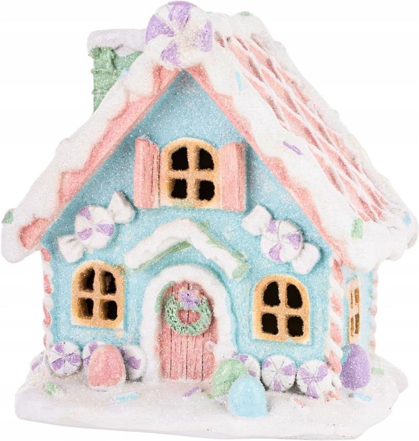Domek LED ceramiczny piernikowy pastelowy 13 cm; kod produktu: 172226 Domek LED ceramiczny piernikowy pastelowy 13 cm Bardzo atrakcyjny wizualnie domek, który przygotowano w formie konstrukcji wykonanej z ceramiki stylizowanej na piernikową. Pastelowe barwy dodają mu jeszcze więcej uroku. Dodatkowo, umieszczono w nim LED-owe oświetlenie. Jest to dekoracja, którą przygotowano z myślą o okresie świąt Bożego Narodzenia. Wnosi do wnętrza magię, klimat i nastrój tego okresu. Wymiary: 13x12x10,5 cm Zasilany 2 X AAA (brak w zestawie)