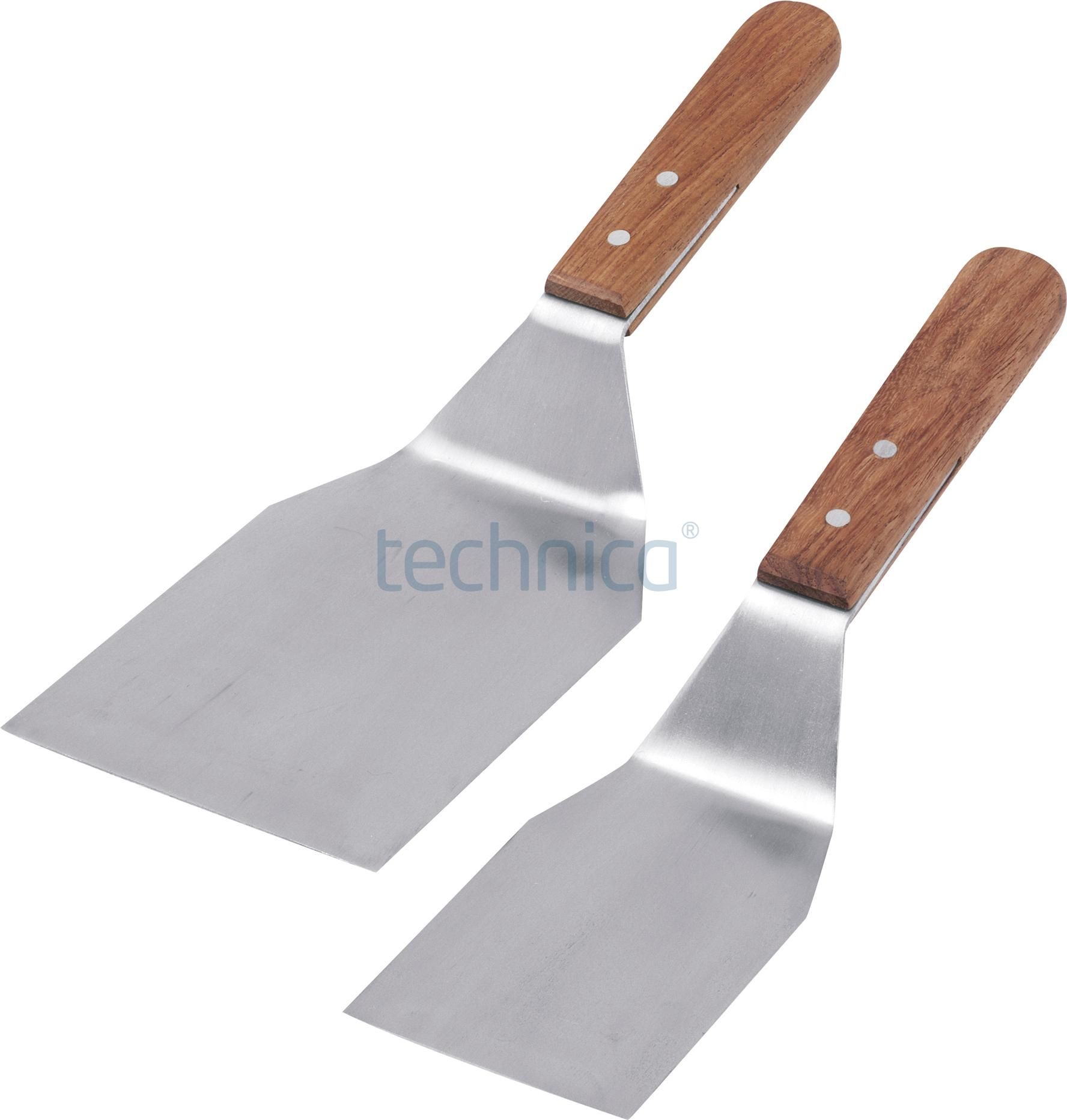 Numer producenta: 855607 Szpachelka wykonana z wysokiej jakości stali nierdzewnej, odpornej na uszkodzenia mechaniczne. Rączka szpachelki posiada drewniany uchwyt, dzięki któremu jest on ciepły i przyjemny w dotyku. Doskonale nada się do lodów tajskich, smażenia, przewracania potraw. Ostre brzegi …