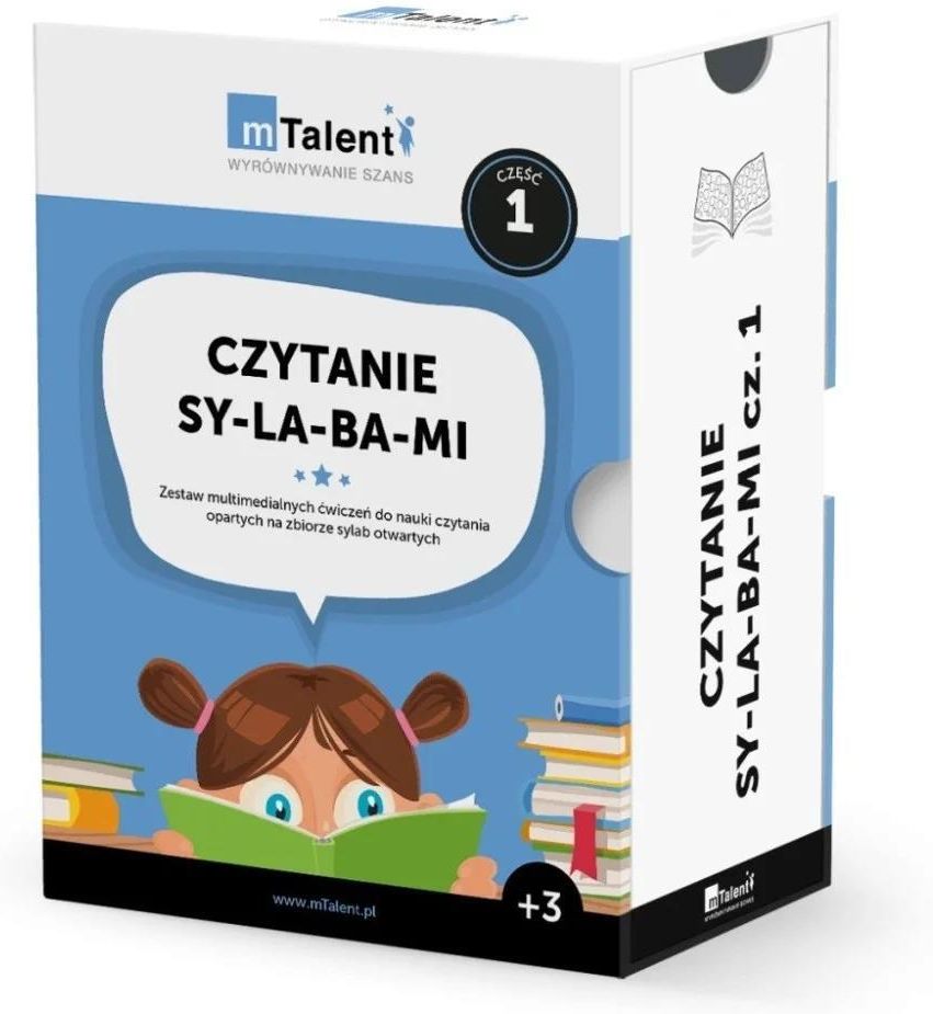 Specjalne potrzeby edukacyjne. mTalent Seria programów mTalent została zaprojektowana w celu wspomagania współczesnego terapeuty i nauczyciela w pracy z dziećmi ze specjalnymi potrzebami edukacyjnymi i rozwojowymi. Programy z serii mTalent to gotowe narzędzia diagnostyczno-terapeutyczne zawierające tysiące interaktywnych ćwiczeń, które z łatwością mogą zostać włączone w program zajęć dydaktyczno-wyrównawczych, rewalidacyjnych, logopedycznych i korekcyjno-kompensacyjnych. mTalent to stale rozwijająca się seria specjalistycznych programów i ćwiczeń wspierających terapię. Od momentu ich powstania baza ćwiczeń każdego programu jest stale powiększana, a co roku seria wzbogacana jest o kolejne pozycje, które odpowiadają na wszystkie potrzeby terapeutów, nauczycieli i ich podopiecznych. Wszystkie programy mTalent dostępne są na zasadzie licencji bezterminowej! Każdy program mTalent dostępny jest w programie dofinansowania Aktywna Tablica 2020-2024! Indywidualizacja i wybór mTalent to najnowsza i najbogatsza na polskim rynku seria programów wspierających terapię. W sumie oferuje ponad 22 tysiące interaktywnych ekranów! Największe doświadczenie na rynku Nad serią mTalent pracuje zespół, który jako pierwszy w Polsce wprowadził technologię do gabinetów logopedycznych i terapeutycznych. Udowodniona skuteczność Wartość merytoryczna programów serii mTalent, ich efektywność, niezawodność i przewagi konkurencyjne zostały potwierdzone w opiniach klinicznych. Najczęściej nagradzana seria mTalent to jedyny polski program wspierający terapię, który otrzymał nagrodę BELMA. mTalent to także jedyne multimedialne rozwiązania nominowane do Bett Awards i konkursu ERA. Status wyrobu medycznego Multimedialne programy mTalent uzyskały status wyrobu medycznego oraz pozytywną ocenę kliniczną, co gwarantuje ich skuteczność oraz bezpieczeństwo Bezterminowa licencja Wydawca serii mTalent udziela bezterminowej i wielostanowiskowej licencji na wszystkie produkty z tej serii. Co więcej, użytkownicy otrzymują także bezpłatne aktualizacje programów i materiały szkoleniowe. Czytanie SY-LA-BA-MI cz. 1 Zestaw multimedialnych ćwiczeń do nauki czytania, opartych na zbiorze sylab otwartych Do wykorzystania na zajęciach dydaktycznych (np. roczne przygotowanie przedszkolne lub wcześniej), dydaktyczno-wyrównawczych, logopedycznych, zajęciach terapii pedagogicznej, zajęciach rewalidacyjnych, w edukacji domowej i innych obszarach mających na celu wykształcenie u dziecka umiejętności czytania. Ponad 550 ekranów interaktywnych, więcej niż 100 kart pracy, przewodnik metodyczny oraz zestaw materiałów dodatkowych w jednym pudełku. Dla nauczycieli przedszkola, rodziców, logopedów i pedagogów zajmujących się wspomaganiem rozwoju oraz podnoszeniem sprawności umiejętności czytania u dziecka. Zawartość programu mTalent Czytanie SY-LA-BA-MI cz. 1 Aż trzy publikacje! (w tym poradnik metodyczny do programu i instrukcja tworzenia własnych zasobów) Ponad 550 ekranów interaktywnych i więcej niż 100 kart pracy do wydruku Zestaw tradycyjnych materiałów edukacyjnych uzupełniających multimedialne ćwiczenia Bezpłatne szkolenie zakończone wystawieniem certyfikatu Dostęp do centrum wsparcia technicznego i szkoleniowego mTalent Bezpłatne aktualizacje programu MTalent Czytanie SY-LA-BA-MI cz. 1 to program do nauki czytania, poprzez wprowadzenie dzieci w świat czytania (w tej części – sylab otwartych), materiały do wykorzystania na zajęciach dydaktycznych (np. roczne przygotowanie przedszkolne lub wcześniej), dydaktyczno-wyrównawczych, logopedycznych, zajęciach terapii pedagogicznej, zajęciach rewalidacyjnych, w edukacji domowej i innych obszarach mających na celu wykształcenie u dziecka umiejętności czytania, wzrastający poziom trudności – od ćwiczeń najprostszych (np. Znajdź sylabę… do wielopłaszczyznowych (np. sylaby i kodowanie, szyfrogramy), SY-LA-BO-WA gra STO-LI-KO-WA – zestaw 300 kart z sylabami otwartymi oraz propozycje zabaw bez użycia komputera, kurs obsługi narzędzia pozwalającego na zrobienie dodatkowych ekranów dla dzieci (np. większej liczby ekranów z wybranymi sylabami otwartymi lub nowych ekranów z ćwiczeniami opartymi na sylabach zamkniętych), materiał z kilkustopniowym systemem motywacyjnym, nieograniczone wsparcie techniczne (telefon, e-mail) bez dodatkowych kosztów mTalent. Czytanie SY-LA-BA-MI cz. 1 składa się z następujących działów: Sylaby otwarte z literą B, C, D, F, G, H Sylaby otwarte z literą J, K, L, Ł, M, N Sylaby otwarte z literą P, R, S, T W, Z, Ż Sylaby otwarte typu CI Sylaby otwarte typu SI Sylaby otwarte typu ZI Sylaby otwarte typu DZI Sylaby otwarte z dwuznakiem CH Sylaby otwarte z dwuznakiem CZ Sylaby otwarte z dwuznakiem DZ Sylaby otwarte z dwuznakiem DŻ Sylaby otwarte z dwuznakiem RZ Sylaby otwarte z dwuznakiem SZ