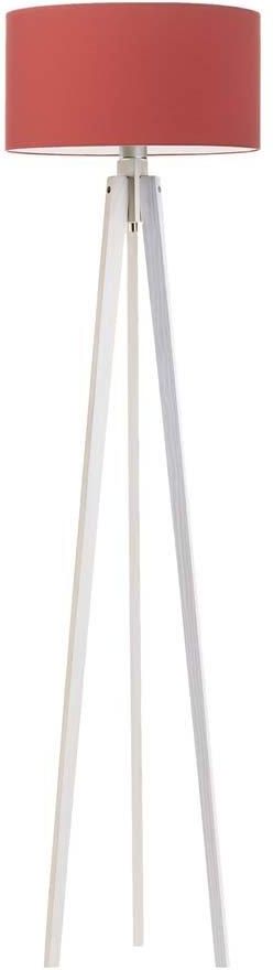 Lampa podłogowa Miami wyróżnia się ciekawą konstrukcją, tworzoną przez trzy drewniane nogi i tkaninowy abażur, Wzrok przykuwa drewniana podstawa oraz konstrukcja przypominająca budową statyw aparatu fotograficznego, Design lampy w udany sposób żongluje koncepcjami – z jednej strony klasyczny abażur, z drugiej nowoczesny kształt, WYMIARY ABAŻURU: wysokość - 20 cm, szerokość - 40 cm WYMIARY LAMPY: wysokość - 148 cm, szerokość - 40 cm KOLOR ABAŻURU: czerwony KOLOR STELAŻA: biały MATERIAŁ: stelaż - elementy drewniane, abażur - holenderska tkanina tekstylna podklejona na folii PVC