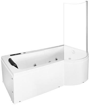 MO-1684P Mazur Spa wanna hydromasaż wraz z dołączonym parawanem w rozmiarze 170 cm x 85 cm. Wanna jest zabudowana z 2 stron i przeznaczona do montażu narożnego. Wanna posiada parawan uchylny na zewnątrz - zakres regulacji parawanu wynosi: 180°. Wanna stoi na stelażu ze stali nierdzewnej.