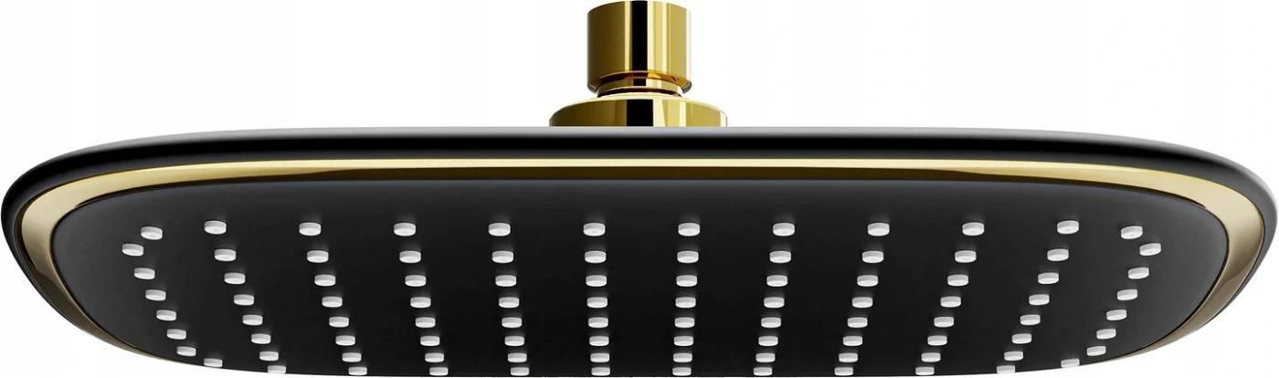 Mexen D-49 deszczownica prostokątna 25x19 cm, czarny/złoty Producent: Mexen Seria: D-49 Numer katalogowy: 79749-75 Dane techniczne Materiał: Tworzywo sztuczne Wykończenie: Czarny/Złoty Wymiary: 255x195 mm Grubość: 20 mm Standardowe przyłącze G 1/2" Deszczownica posiada gumowe dysze, które zapobiegają osadzaniu się kamienia