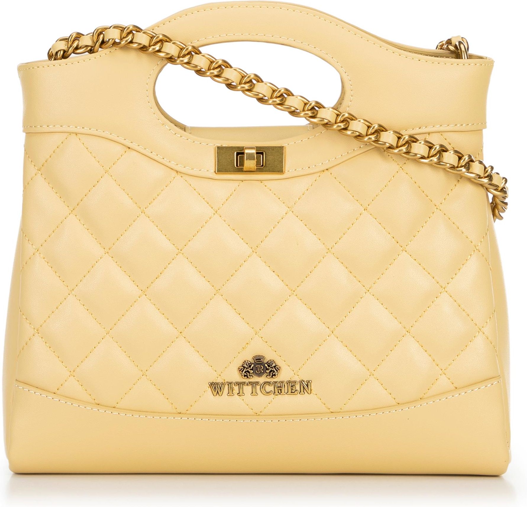 Minikuferek ze skóry pikowany na łańcuszku żółty Tarczyn