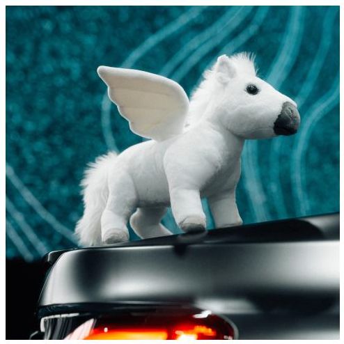 Pluszowy Pegaz BMW Plush Pegasus Od dziś możesz mieć własnego pluszaka BMW znanego ze spotu "Zeus & Hera" zaprezentowanego na Super Bowl z 2022r. Sam spot prezentował w pełni elektrycznego BMW iX, a Pegazka Peggy była jego cichą gwiazdą! Materiał: 100% poliester Wypełnienie: 100% poliester z recyklingu Wymiary: 36x25 cm Certyfikat OEKO-TEX®