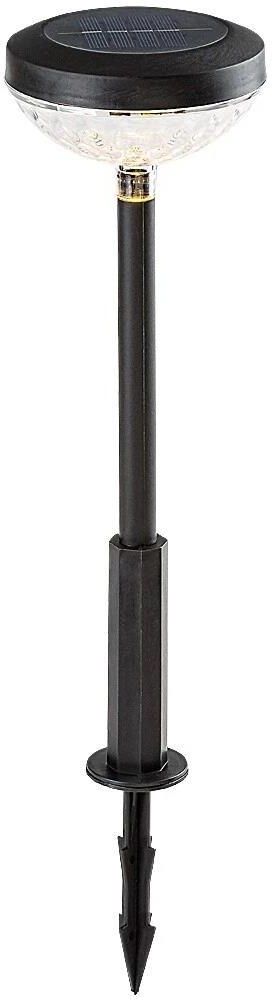 Solarna lampa dekoracyjna Monor zachwyca eleganckim designem i imponującym efektem świetlnym, który ozdobi każdy zakątek ogrodu. Korpus lampy wykonany jest z czarnego tworzywa sztucznego i uzupełniony przezroczystym kloszem o fasetowanej powierzchni, który po zapaleniu tworzy charakterystyczny kwiatowy wzór na otaczającej powierzchni. Zintegrowane źródło światła LED o mocy 0,1 W emituje ciepłe białe światło o temperaturze 3000 K lub kolor RGB. Zapewnia strumień świetlny o wartości 3 lumenów. Tryb światła można wybrać za pomocą przełącznika na spodzie panelu słonecznego - przełącznik w lewo aktywuje RGB, w prawo aktywuje ciepłe białe światło, a środkowa pozycja służy do wyłączania lampy. Lampa jest wyposażona w panel słoneczny i czujnik światła, który automatycznie reaguje na intensywność światła otoczenia - zapala się sama, gdy robi się ciemno. Wykorzystuje akumulator 1,2 V 600 mAh, który ładuje się w pełni w ciągu 6-8 godzin i świeci przez mniej więcej taki sam czas. Dzięki stopniowi ochrony IP44 lampa jest chroniona przed bryzgami wody i wnikaniem cząstek stałych, dlatego nadaje się również do mniej osłoniętych obszarów zewnętrznych. Lampa jest przeznaczona do użytku na zewnątrz w zakresie temperatur roboczych od -20°C do 55°C, a zatem nadaje się do pracy przez cały rok. Wysokość lampy wynosi 470 mm, a średnica głowicy 110 mm.