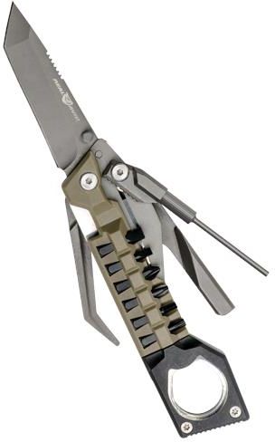 Multitool Real Avid The Pistol Tool – 19 funkcji w jednym narzędziu Jeśli szukasz narzędzia, które sprawi, że Twój pistolet zawsze będzie w idealnym stanie – to właśnie je znalazłeś. Multitool Real Avid The Pistol Tool łączy aż 19 funkcji w kompaktowej, brązowej konstrukcji, dzięki czemu masz pod ręką wszystko, czego potrzebujesz do rozkładania, regulacji i konserwacji broni. Od wymiany szczerbiny, przez regulację przyrządów celowniczych, aż po czyszczenie prowadnic i zamka – to narzędzie zostało stworzone z myślą o strzelcach, którzy stawiają na pełną kontrolę i niezawodność. Cechy narzędzia wielofunkcyjnego Real Avid The Pistol Tool 19 funkcji w jednym narzędziu – pełna obsługa pistoletów bez dodatkowego sprzętu. Ostrze typu tanto 76 mm – niezawodne w warsztacie i w terenie. Wybijak do pinów z gwintem 8-32 – szybka i bezpieczna konserwacja. Skrobak i pilnik – czystość i precyzja nawet w trudno dostępnych miejscach. Klucze do pistoletów 1911 – pasują do wersji Government i Officer. Bity płaskie, krzyżakowe, torx i imbusy – wszystko w jednym zestawie. Mechanizm Liner Lock – bezpieczeństwo i stabilność podczas pracy. Stal nierdzewna z powłoką tytanową – odporność na zużycie i korozję. Ergonomiczna konstrukcja – wygoda obsługi nawet jedną ręką. Kompaktowy rozmiar i tylko 250 g – idealny multitool na strzelnicę. Pełna kontrola nad serwisem pistoletu Multitool wyposażono w zestaw bitów torx, płaskich i krzyżakowych, klucze Bondhus do regulacji laserów, stalowy wybijak do pinów i skrobak zaprojektowany specjalnie do czyszczenia prowadnic oraz zamków. Dzięki liner lock każdy element blokuje się podczas pracy, co daje Ci pewność i bezpieczeństwo nawet przy wymagających czynnościach. To rozwiązanie, które pozwala działać sprawnie i precyzyjnie, bez konieczności korzystania z całego warsztatu narzędzi. Solidność i mobilność dla wymagających strzelców Pistol Tool został wykonany ze stali nierdzewnej pokrytej powłoką tytanową, co gwarantuje trwałość i odporność na intensywne użytkowanie. Ostrze typu tanto o długości 76 mm sprawdzi się w wielu sytuacjach, a ergonomiczna konstrukcja pozwala obsługiwać multitoola nawet jedną ręką. Przy wadze zaledwie 250 g i kompaktowych wymiarach to narzędzie zmieści się w każdej torbie strzeleckiej, dając Ci pewność, że zawsze jesteś przygotowany – czy to na strzelnicy, czy w terenie. Informacje o produkcie Marka Real Avid Blokada ostrza Liner lock Profil głowni Tanto Ilość funkcji 19 Typ materiału stal nierdzewna z powłoką tytanową Zastosowanie (przeznaczenie) konserwacja broni Długość ostrza [mm] 76 Masa [g] 250