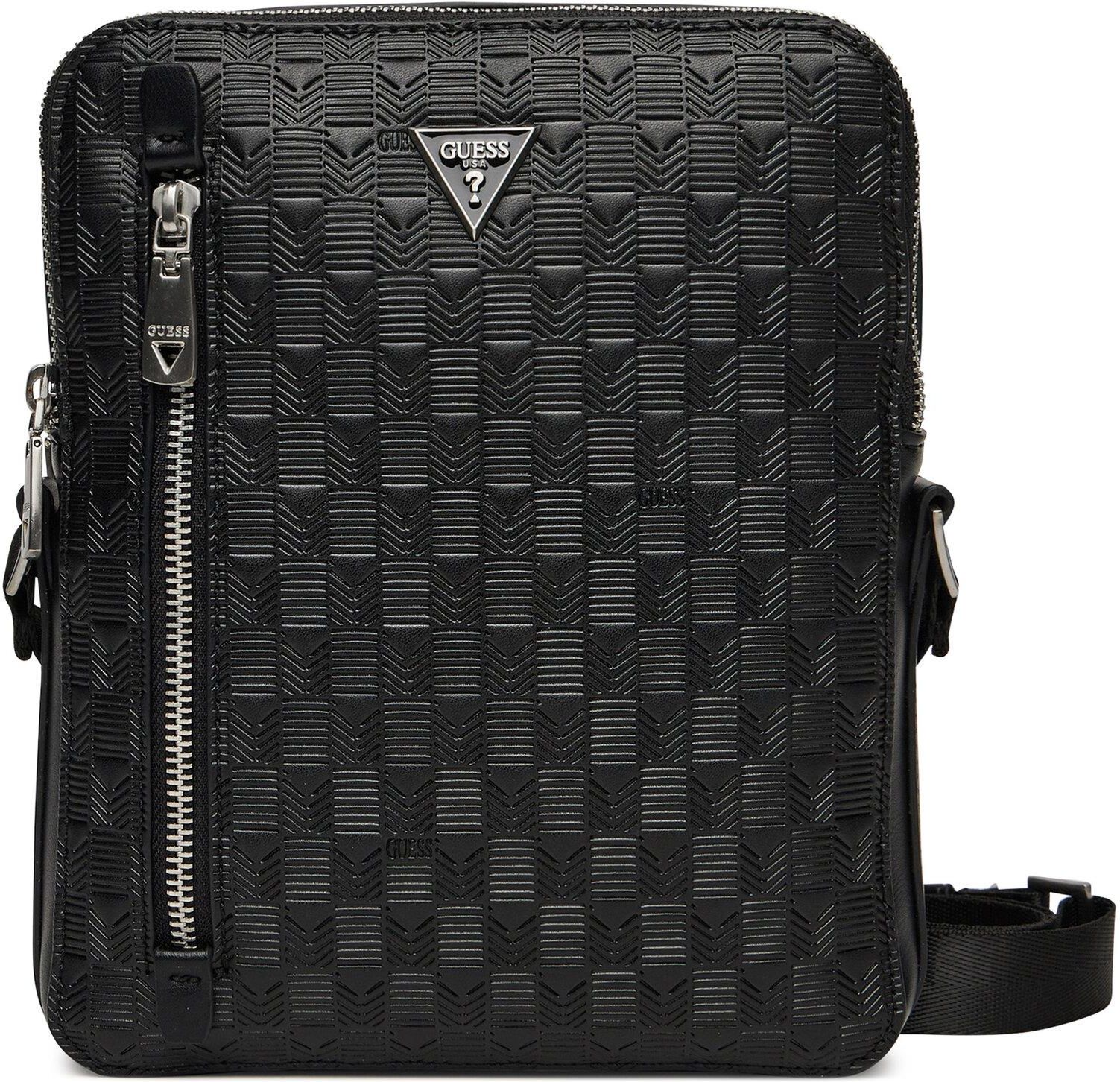 Czarna saszetka męska marki Guess, wykonana z wysokiej jakości skóry ekologicznej. Wyposażona w dwie pojemne komory, jedną wewnętrzną kieszeń na zamek oraz jedną wsuwaną. Dodatkowo posiada jedną kieszeń zapinaną na zamek. Regulowany pasek zapewnia wygodę noszenia.