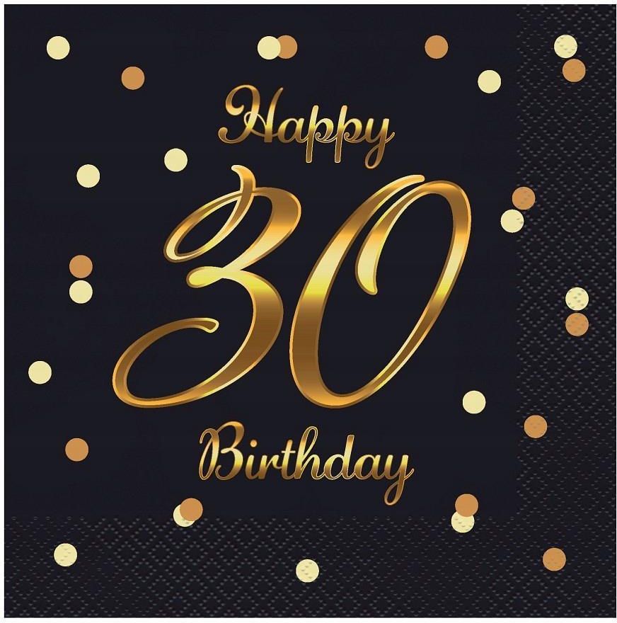 Serwetki B&C Happy 30 Birthday Czarne Nadruk Zło Tarczyn