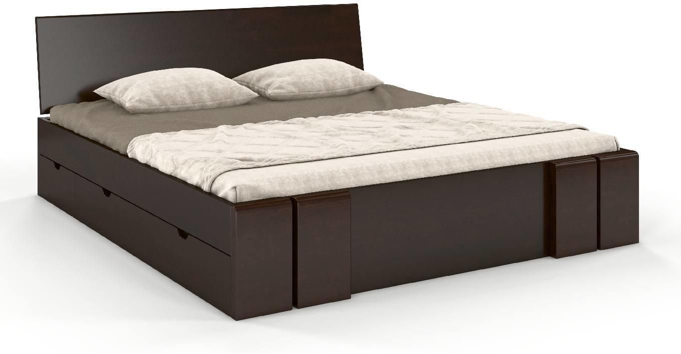 Łóżko VESTRE to łóżko wysokie - jego wysokość wynosi 86 cm. Jeśli męczył cię wysiłek podczas wstawania, z łóżka Sparta wystarczy zrzucić nogi na podłogę - wstawanie odbywa się bez najmniejszego trudu. Dla większego komfortu łóżko wyposażono w aż 4 szuflady – po dwie na każdym z boków. Ich pojemność przewiduje duże potrzeby – pomieszczą wiele. Materiał: lite drewno sosnowe Zagłówek: drewno sosnowe Sposób wykończenia drewna: dwukrotne szlifowanie + bejca + 2 warstwy lakieru Kolor drewna: do wyboru ze wzornika Drewno łączone na "mikrowczepy" - dzięki temu pozbawione jest ono skaz i sęków po widocznej stronie, a co najważniejsze, jest bardziej wytrzymałe na uszkodzenia i działanie wilgoci – wykazuje lepsze właściwości mechaniczne w stosunku do drewna litego i nie wypacza się. "Piąta" noga wzmacnia konstrukcję łóżka. Łóżko nie posiada stelaża w komplecie!