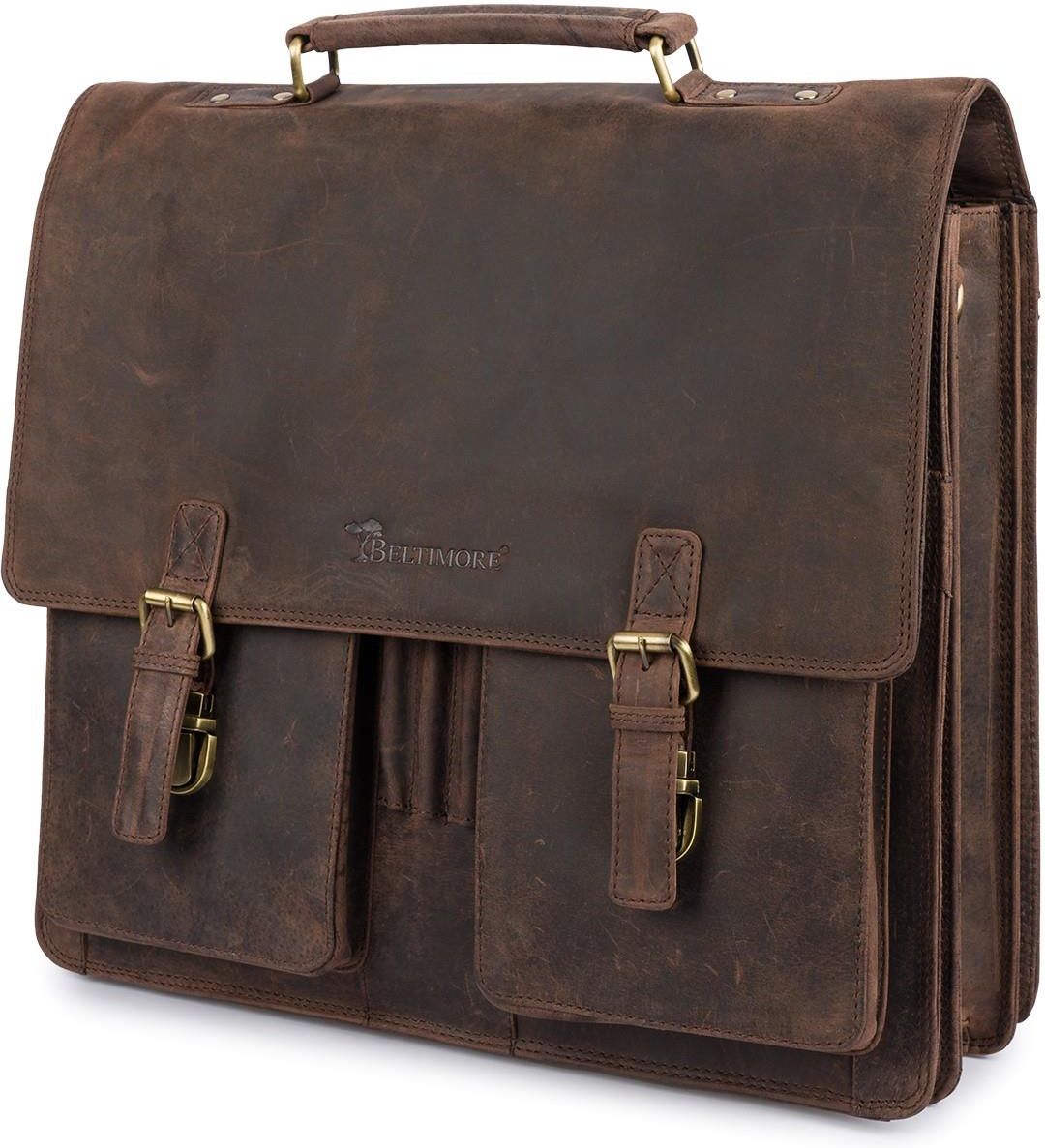 Skórzana aktówka męska elegancka teczka na dokumenty brązowa skóra nubuk Beltimore J22 Tarczyn