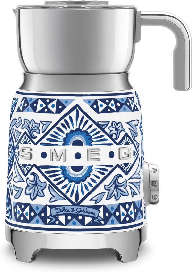 Współpraca pomiędzy kreatywnymi umysłami SMEG i Dolce&Gabbana zaowocowała nową serią małych urządzeń AGD pod nazwą Blu Mediterraneo. Ta unikalna linia została stworzona przez SMEG we współpracy z projektantami Matteo Bazzicalupo i Raffaellą Mangiarotti, którzy wniosli do projektów niepowtarzalną kreatywność Dolce&Gabbana. Efektem jest fenomenalna seria w kolorystyce biało-niebieskiem inspirowana klimatem wybrzeża Amalfi oraz włoskim, tradycyjnym rzemiosłem. Spieniacz do mleka SMEG i Dolce&Gabbana Blu Mediterraneo, będąca częścią tej kolekcji, zachwyca biało-niebieskim wzornictwem, odzwierciedlającym atmosferę Morza Śródziemnego i włoską kulturę. Oprócz niekwestionowaniej estetyki, oferuje także funkconalność. Spieniacz jest uzupełnieniem do ekspesu kolbowego z tej kolekcji przeznaczonego do parzenia włoskiego espresso. Przy pomocy spieniacza możesz przygotować pyszne cappucino lub inne kawy mleczne. Kolekcja Blu Mediterraneo SMEG x Dolce&Gabbana oferuje także inne urządzenia tzw. małego AGD, takie jak toster, ekspres do kawy kolbowy czy wyciskarka do cytrusów, które mogą razem stworzyć spójne i wyjątkowe wyposażenie kuchni. Produkty z tej serii mogą również stanowić oryginalny prezent dla bliskich osób na ważne okazje, takie jak: ślub, rocznica, urodziny czy święta. Właściwości produktu Spienianie mleka metodą indukcyjną z systemem automatycznego wyłączania. Funkcje: ciepłe mleko, ciepłe mleko z delikatną pianką, ciepłe mleko z gęstą pianką, gorąca czekolada, zimne mleko z delikatną pianką, zimne mleko z gęstą pianką, program manualny zimny, program manualny gorący. Antyposlizgowa podstawa chroniąca przed przesuwaniem się urządzenia podczas pracy. Wbudowany schowek na kabel pozwala ukryć przewód, gdy urządzenie nie jest używane. Łatwe czyszczenie - wyjmowany dzbanek można myć w zmywarce. Dane techniczne Materiał wykonania: stal nierdzewna (korpus, kielich), tworzyw sztuczne (pokrywka, przyciski i pokrętła, miarka, uchwyt, kołnierz, podstawa) Wykończenie elementów metalowych: połysk Pojemność dzbanka do podgrzewania: 600 ml - 2,5 filiżanki Pojemność dzbanka: 250 ml - 1 filiżanka Moc (W): 500 W Napięcie (V): 220-240 V Częstotliwość (Hz): 50/60 Hz Długość przewodu zasilającego: 1 m Przewód zasilający jest w kolorze szarym Wymiary urządzenia: - wysokość: 25,1 cm, - szerokość: 18,4 cm, - głębokość: 14,2 cm. Akcesoria w zestawie: - końcówka do podgrzewania mleka - końcówka do spieniania mleka lub przygotowywania czekolady Opakowanie: kartonowe pudełko o wymiarach: 36,6 x 22,4 x 24,8 cm. Produkt objęty jest 2 letnią gwarancją. Historia marki SMEG rozpoczęła się już w 1948 roku we Włoszech, a obecnie jest to marka wiodąca w produkcji sprzętu domowego. Firma Smeg to nie tylko tostery, miksery, blendery, czajniki, ale również kuchenki i lodówki i wiele innych. Kiedy marka ugruntowała swoją pozycję na rynku, rozpoczęła produkcję również urządzeń profesjonalnych, zarówno dla restauracji i ośrodków medycznych. Produkty tej marki stały się znane na całym świecie. Obecnie firmą zarządza już trzecie pokolenie rodziny, która założyła markę i kontynuuje tradycję poprzez nazwę firmy, która brzmi: „Smalterie Metallurgiche Emiliane Guastalla”, co dokładnie oznacza: „Zakłady Metalurgiczne w Gustalii”. Współpracujemy z oficjalnym dystrybutorem marki SMEG w Polsce. Nasz sklep internetowy codziennie dba, aby produkty trafiały szybko i bezpiecznie do Państwa domów. Dziękujemy za zaufanie. Jeżeli masz jeszcze jakieś pytania - napisz lub zadzwoń! tel. 660 56 57 58 e-mail: bok@kuchniapremium.pl