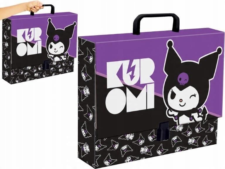 Teczka z rączką A4 XL – ST.Right KUROMI Sztywna, lakierowana | z rączką i zamkiem | motyw KUROMI 🎀 ST.Right KUROMI XL to wyjątkowo praktyczna i stylowa teczka z rączką, idealna do przechowywania dokumentów, prac plastycznych czy materiałów szkolnych. Jej sztywna konstrukcja i wysokiej jakości wykończenie sprawiają, że jest trwała i wygodna w codziennym użytkowaniu. Teczka została wykonana z grubej tektury, oklejonej z obu stron elegancką grafiką z motywem KUROMI i pokrytej lakierem ochronnym. Plastikowa rączka i zapięcie zapewniają łatwe przenoszenie i bezpieczne zamknięcie zawartości. 📐 Specyfikacja techniczna ✅ Format: mieszczący dokumenty A4 ✅ Wymiary: 33 × 24,8 (25,6 z rączką) × 9 cm ✅ Materiał: gruba tektura, lakierowana okleina ✅ Gramatura kartonu: 1160 g/m² (po uszlachetnieniu: 1400 g/m²) ✅ Zapięcie i rączka: wykonane z plastiku ✅ Motyw: KUROMI – z kolekcji ST.Right 🖤 ST.Right KUROMI – stylowa ochrona Twoich dokumentów!