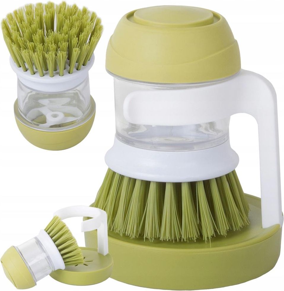 Szczotka z dozownikiem idealnie sprawdzi się w każdym domu. Przeznaczona jest do szorowania garnków i nie tylko. Pomoże Ci łatwo usunąć zabrudzenia, przypalenia itp. Dzięki dozownikowi na płyn nie będziemy mieć bezpośredniego kontaktu ze środkami chemicznymi co sprawdzi się w przypadku osób Szczotka z dozownikiem idealnie sprawdzi się w każdym domu. Przeznaczona jest do szorowania garnków i nie tylko. Pomoże Ci łatwo usunąć zabrudzenia, przypalenia itp. Dzięki dozownikowi na płyn nie będziemy mieć bezpośredniego kontaktu ze środkami chemicznymi co sprawdzi się w przypadku osób alergicznych. Szczotka posiada elegancki stojak z ociekaczem. Dzięki czemu woda ze szczotki nie będę rozlewała się po blacie. Płyn uwalnia się w momencie naciśnięcia przycisku w górnej części szczotki. SPECYFIKACJA TECHNICZNA: ✅ Kod produktu: 24214_Z ✅ Wysoka jakość wykonania ✅ Wygodna w użyciu ✅ Idealna do szorowania ✅ Pomaga usunąć uporczywe zabrudzenia ✅ Wyposażona w dozownik płynu ✅ Elegancki stojak ✅ Ociekacz w stojaku ✅ Wysokość: 9,5cm ✅ Długość włosia: 2,5cm ✅ Średnica szczotki (włosia): 7cm ✅ Wymiary stojaka: 9cm x 9cm x 9cm ✅ Kolor: zielony ZESTAW ZAWIERA: ☑️ Fabrycznie nowa szczotka z dozownikiem ☑️ Oryginalne opakowanie