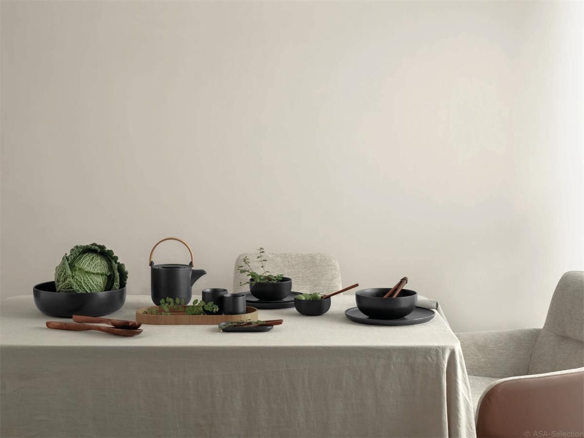 Ręcznie nakładane szkliwo nadaje wyjątkowego uroku - ten produkt jest jedyny w swoim rodzaju. Matowa powierzchnia nadaje niepowtarzalnego charakteru, a możliwość wytworzenia się wraz z użytkiem i upływem czasu srebrnych smug, czyni całość jeszcze bardziej wyjątkową. Ten naturalny proces ma miejsce gdy miękki metal sztućców wchodzi w kontakt z twardym, teksturowanym szkliwem.O „COPPA KURO”W języku japońskim słowo kuro oznacza „czarny” i to właśnie ten ponadczasowy wybór palety barw nadaje serii eleganckiego wyglądu. Minimalistyczne kształty są ożywiane przez błyszczące, plamiste szkliwo. Stworzone z najwyższej jakości porcelany, wszystkie przedmioty z kolekcji są wyjątkowo trwałe, co czyni je idealnymi zarówno do codziennego użytku, jak i typowego otoczenia profesjonalnego. Proces wypalania sprawia i stworzone w związku z tym wzory sprawiają, że nie ma dwóch takich samych produktów.- Można myć w zmywarce- Można używać w mikrofalówce- Można przechopwywać w zamrażarce- Nadaje się do piekarnika***„ASA SELECTION” została założona w 1976 roku, w Hoehr-Grenzhausen w Niemczech, przez projektantkę Yvonne Schubkegel. Sprzedając ceramiczne akcesoria domowe, firma ta jest obecnie jednym z liderów w branży. Ciągłe innowacje sprawiły, że „ASA SELECTION” działa obecnie w ponad 80 krajach na całym świecie.