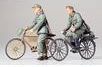 Modele plastikowych figurek do sklejania w skali 1:35, niemieckich żołnierzy na rowerach. Zawartość - 2 figurki z ekwipunkiem, - 2 rowery. Historia Niemiecka armia dostosowała mechanizację i była dumna przed innymi armiami ze swojej wielkiej mobilności podczas II wojny światowej. Siły niemieckie używały również rowerów w dużych ilościach jako zwykły środek transportu. Chociaż rowery wojskowe zostały wyprodukowane przez różnych producentów rowerowych, podstawowe elementy zostały ujednolicone w celu zaspokojenia popytu i podaży części zamiennych. Wymiary rower: długość 55mm, opakowanie: 17,5 x 15,5 x 2,5cm. Dane techniczne Numer katalogowy: 35240, Producent: Tamiya, Skala: 1:35, Okres: II wojna światowa, Państwo: Niemcy.