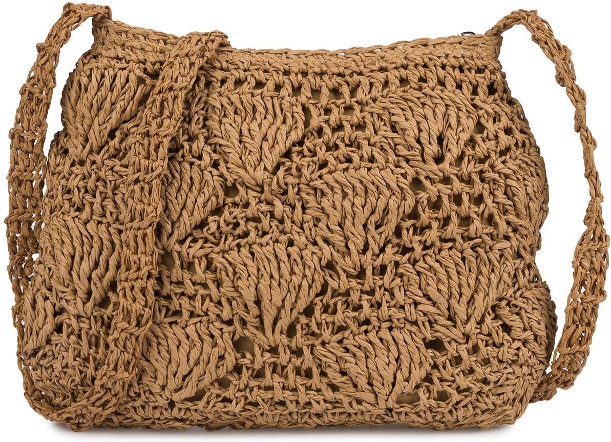 Torba damska na lato boho pleciona słomiana na ramię brązowa Tor-pb-47 Tarczyn