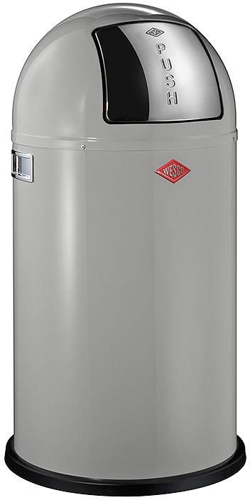 Wesco Kosz na Śmieci Szary 50l Pushboy Po prostu klasyczny! Odpady są wyrzucane przez dużą klapę ze stali nierdzewnej, która zapewnia odcięcie zapachu. Materiał: wysokiej jakości lakierowana proszkowo blacha. Klapka: stal nierdzewna. Metalowa wkładka. Niemiecka marka WESCO swymi korzeniami sięga aż …