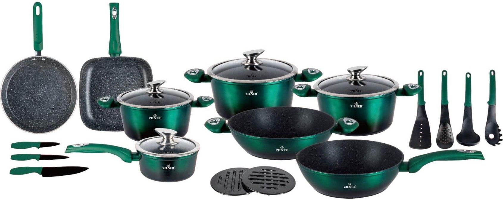 Zilner Zestaw Garnków Z Powłoką Marmurową 21 El. Emerald Noir Zl 8542 Tarczyn