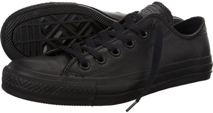 Trampki Converse Chuck Taylor All Star Leather black mono łączą kultową sylwetkę z nowoczesnymi rozwiązaniami materiałowymi i technologicznymi. Wysoka cholewka wykonana ze skóry naturalnej tworzy solidną i przewiewną konstrukcję, zapewniając jednocześnie komfort użytkowania na co dzień. Cholewka ze skóry naturalnej Cholewka modelu wykonana została z wysokogatunkowej skóry, co przekłada się na zwiększoną trwałość oraz odporność na intensywne użytkowanie. Skóra zapewnia również odpowiednią oddychalność, wspierając komfort termiczny przez cały dzień. Dodatkowe wsparcie strukturalne to zasługa wysokiego profilu, który stabilizuje stopę podczas ruchu. Technologia wkładki OrthoLite® Wkładka wyposażona w technologię OrthoLite® odpowiada za efektywną amortyzację i szybkie odprowadzanie wilgoci. Dzięki temu model Converse Chuck Taylor All Star Leather dba o wygodę podczas wielogodzinnego użytkowania, minimalizując uczucie zmęczenia stóp. Piankowy materiał wkładki zachowuje sprężystość i właściwości amortyzujące przez cały okres noszenia. Gumowa podeszwa zewnętrzna Podeszwa zewnętrzna powstała z odpornej na ścieranie gumy, która gwarantuje dobrą przyczepność do podłoża i elastyczność podczas codziennych aktywności. Guma zastosowana w środkowej i zewnętrznej części podeszwy poprawia amortyzację i wpływa na komfort poruszania się po różnych nawierzchniach. Klasyczne sznurowanie pozwala na indywidualne dopasowanie do stopy, podkreślając funkcjonalność trampek. Trampki Converse Chuck Taylor All Star Leather black mono - cechy: Cholewka wykonana z wysokiej jakości skóry naturalnej; Wkładka z technologią OrthoLite® zapewniająca amortyzację i oddychalność; Wysoki profil cholewki dla lepszej stabilizacji stopy; Podeszwa środkowa i zewnętrzna wykonane z odpornej na ścieranie gumy; Sportstyle – model przeznaczony do codziennego użytkowania; Amortyzująca wkładka minimalizująca zmęczenie stóp podczas chodzenia; Elastyczna podeszwa dla większej swobody ruchów; Uniwersalny model odpowiedni zarówno dla kobiet, jak i mężczyzn.